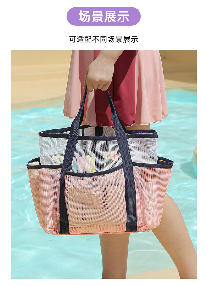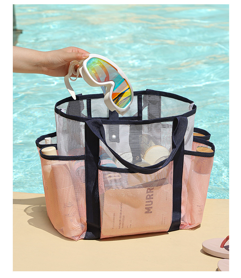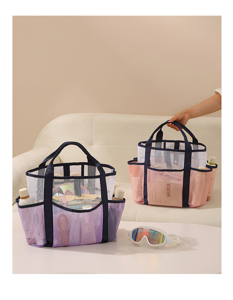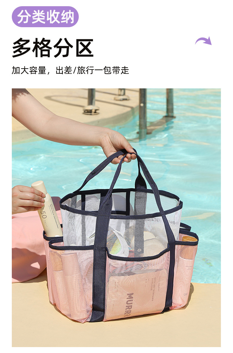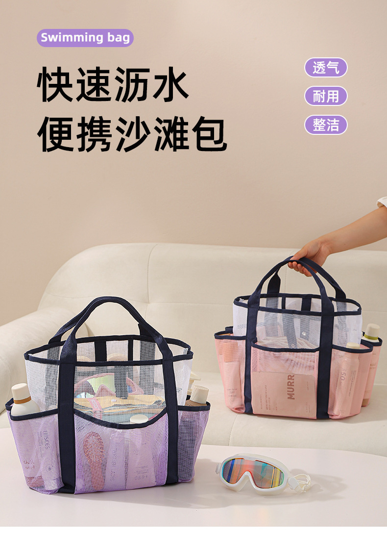 새로운 대용량 다중 포켓 휴대용 세면도구 가방, 야외 접이식 수납 가방, 메쉬 배수 수영 가방스토어 가기