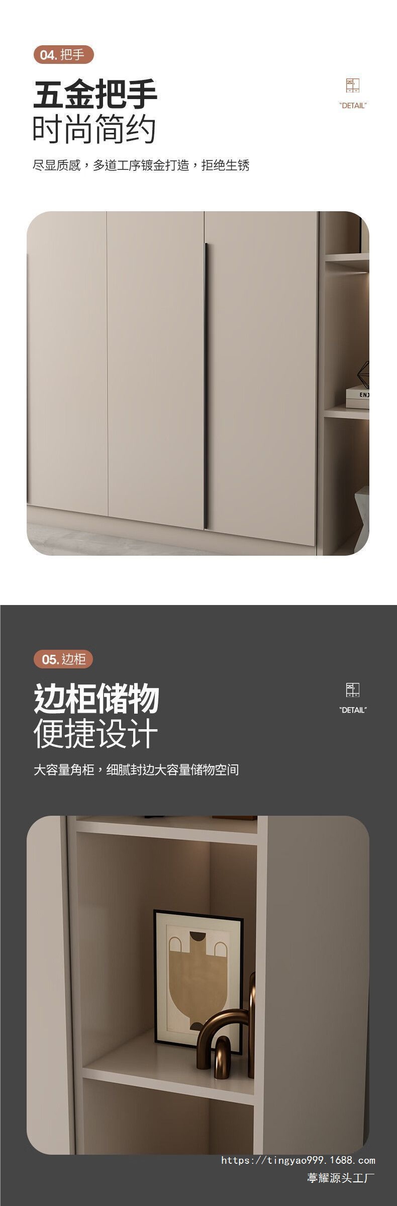 • 1.6m 싱글 옷장 + 사이드 캐비닛 [도어 4개] [깊이 50cm]