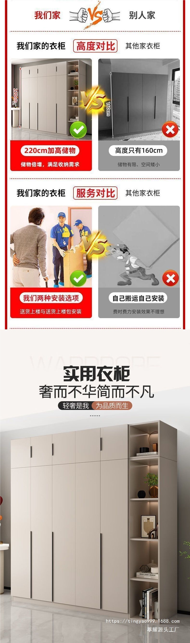 • 1.6m 싱글 옷장 + 상단 수납장 [도어 4개] [깊이 50cm]