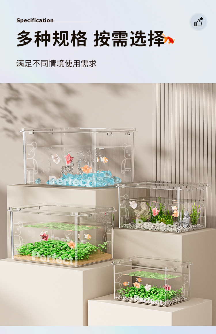 투명 모조 유리 수조 작은 데스크탑 홈 오피스 금붕어 거북이 미니 사각형 모조 아크릴 물 탱크스토어 가기