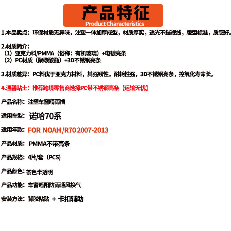 • NOAH Noah R70 2007-2013 주입 밝은 스트립 창 비가 오는 방패 두꺼운 3.0mm 4pcs