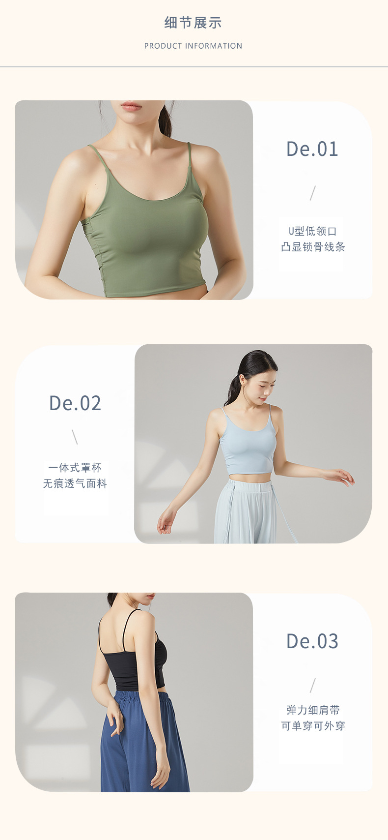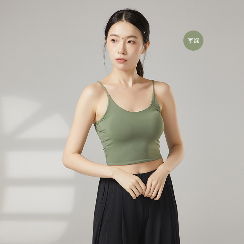 여성용 댄스 연습복, 성인 요가 댄스 탑, 심리스 캐미솔, 가슴 패드가 있는 스포츠 브라