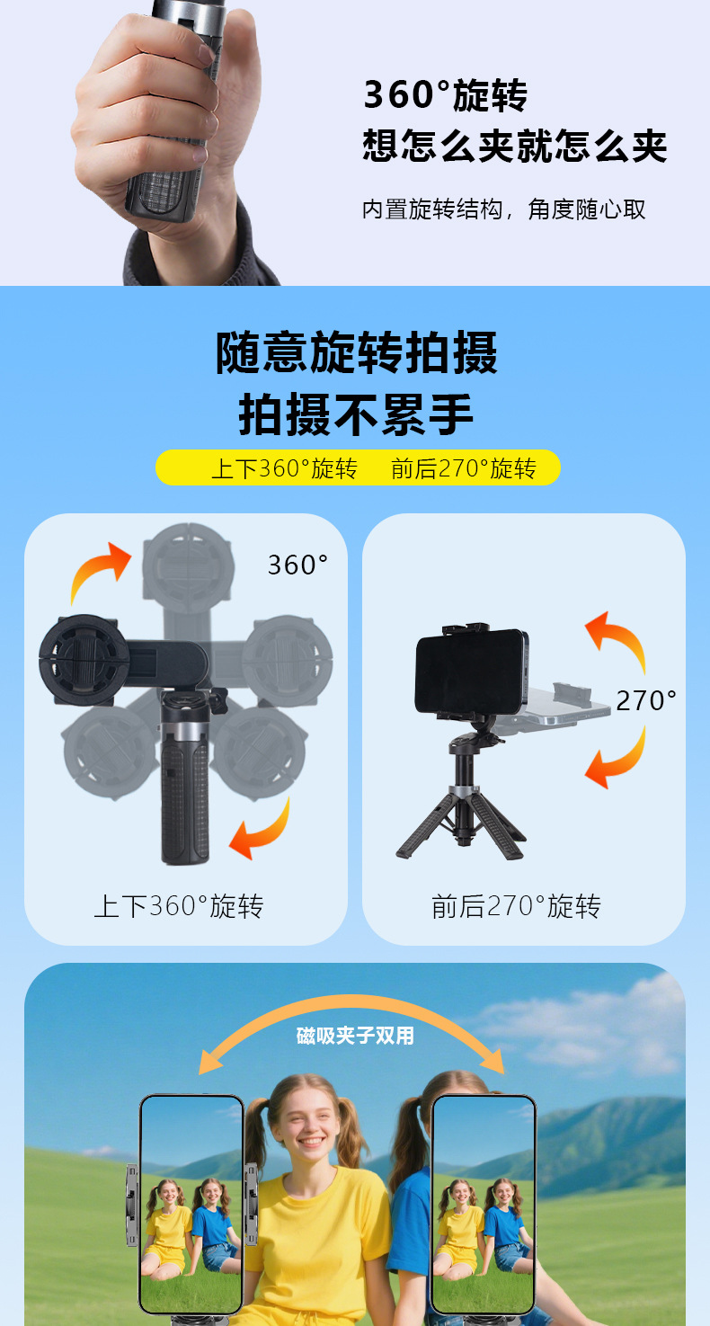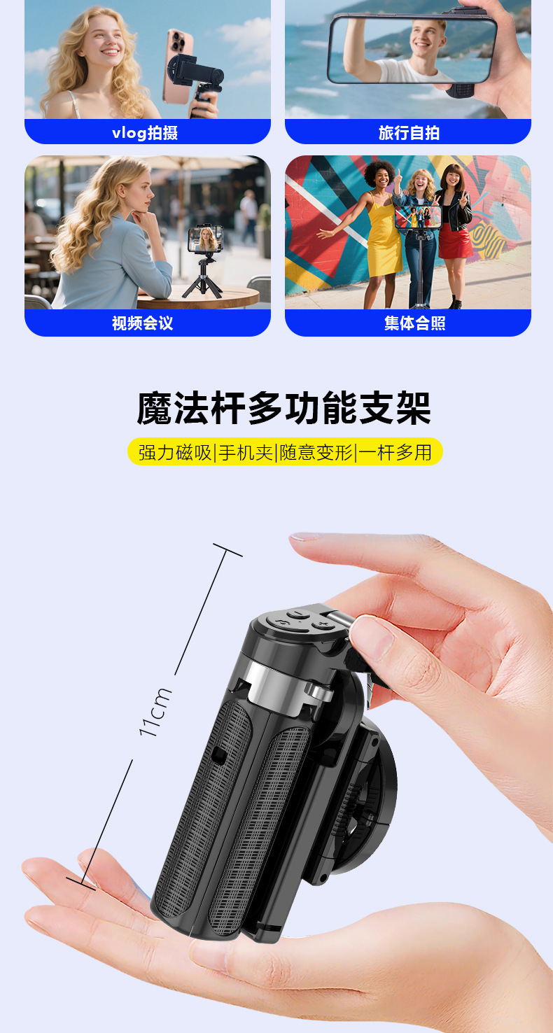 미니 블루투스 셀카봉, 4각대, 사진촬영용품, 휴대폰 거치대, 회전식 휴대용 콘서트 브이로그 촬영스토어 가기
