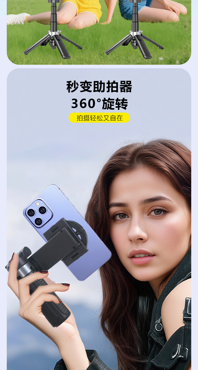 미니 블루투스 셀카봉, 4각대, 사진촬영용품, 휴대폰 거치대, 회전식 휴대용 콘서트 브이로그 촬영