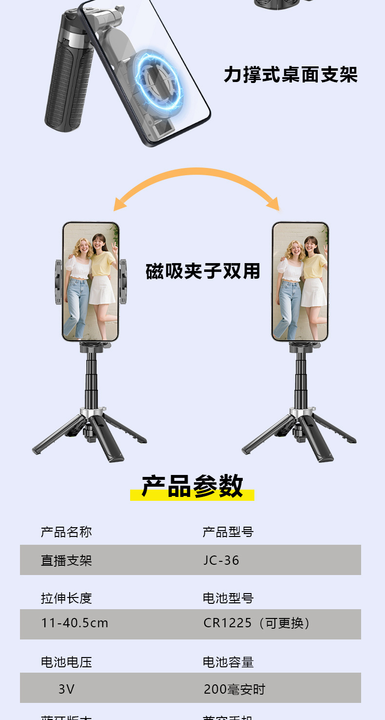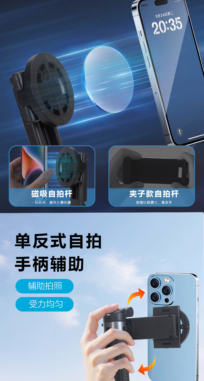 • JC36-Black [Magsafe 마그네틱 스타일] 울트라 미니 셀카봉 + 블루투스 촬영 보조 장치