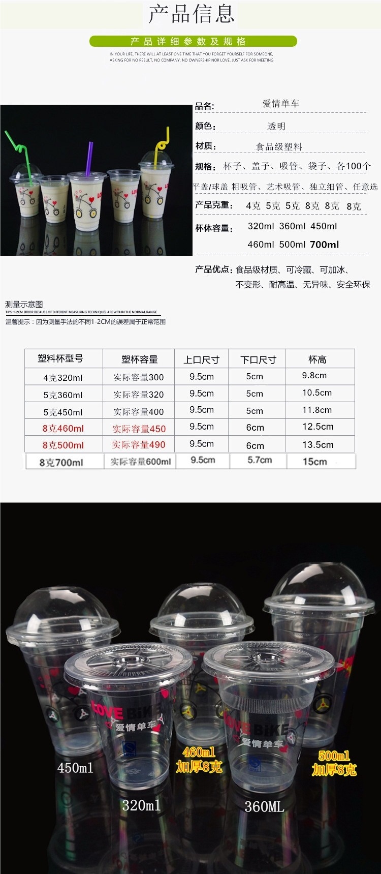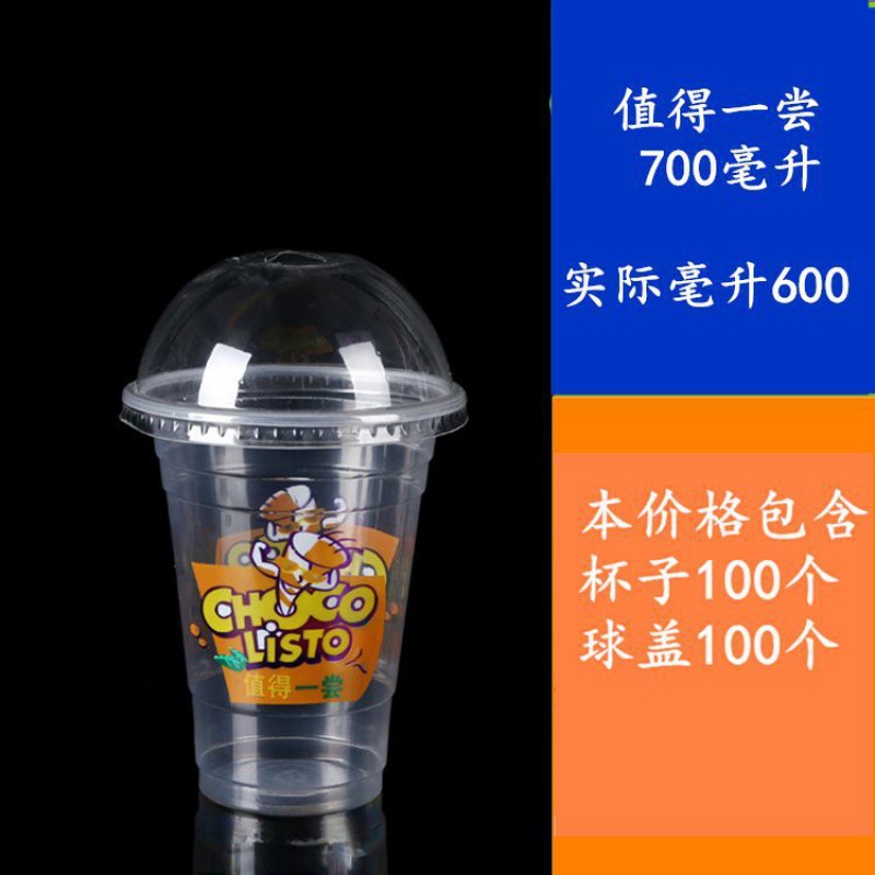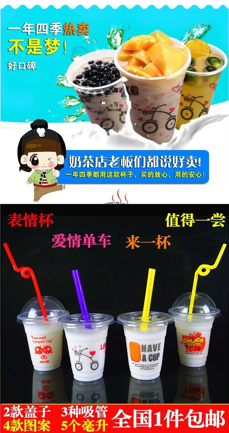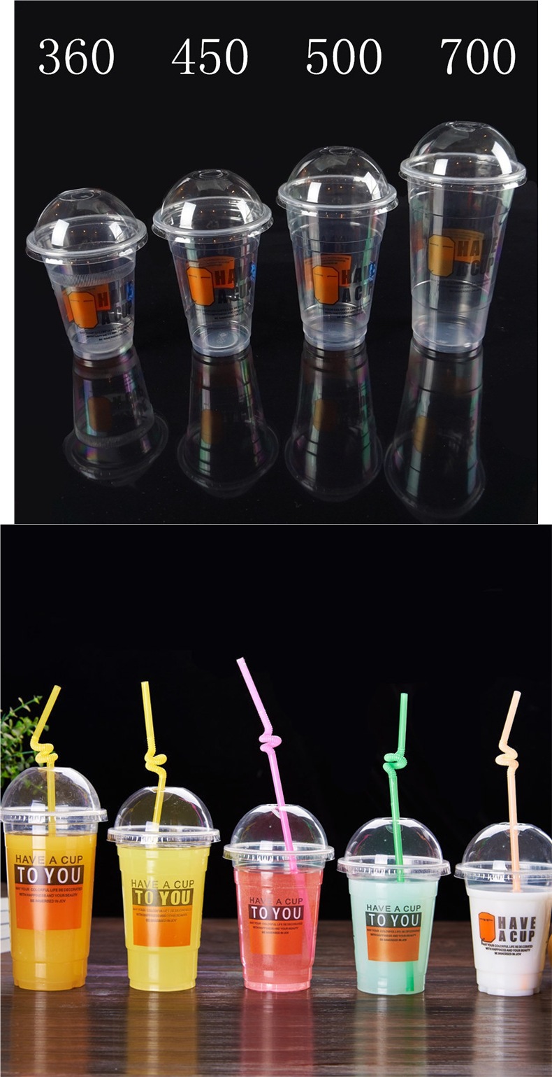 뚜껑이 있는 플라스틱 컵 일회용 밀크티 컵 차가운 음료 컵 주스 컵 뚜껑이 있는 두유 컵 세트 빨대 배치