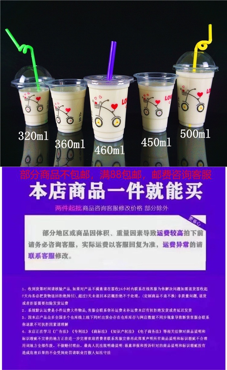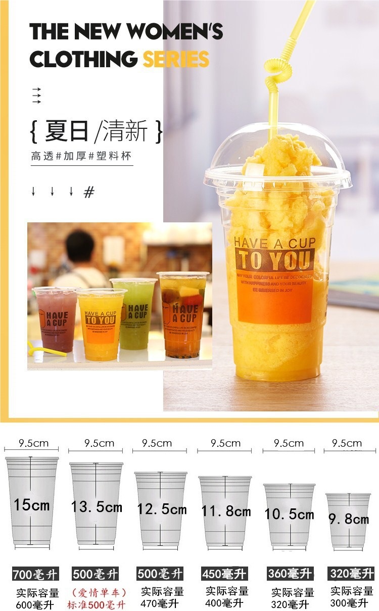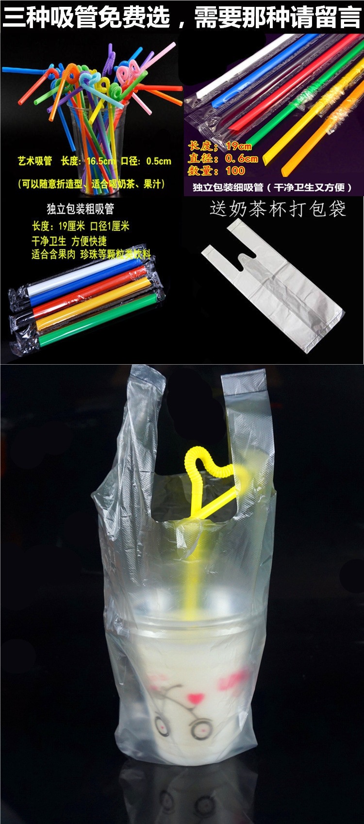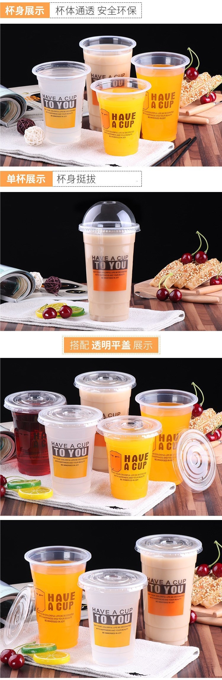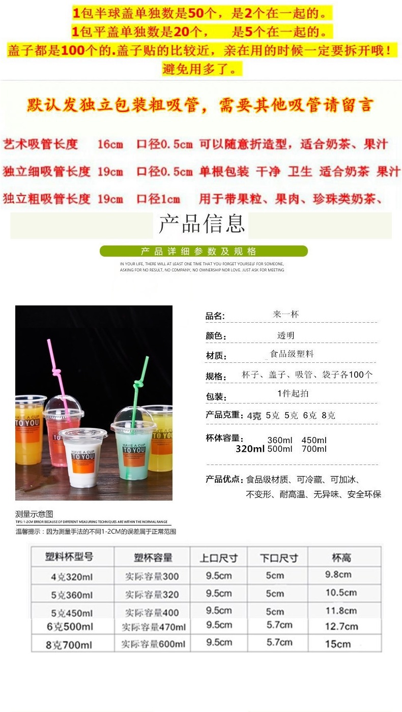 뚜껑이 있는 플라스틱 컵 일회용 밀크티 컵 차가운 음료 컵 주스 컵 뚜껑이 있는 두유 컵 세트 빨대 배치스토어 가기