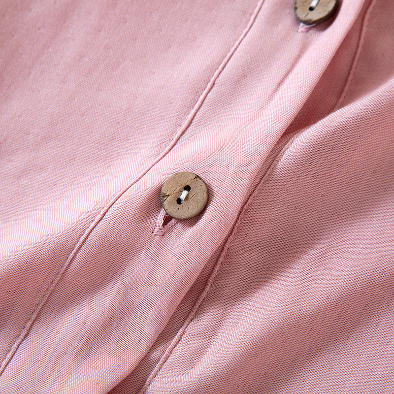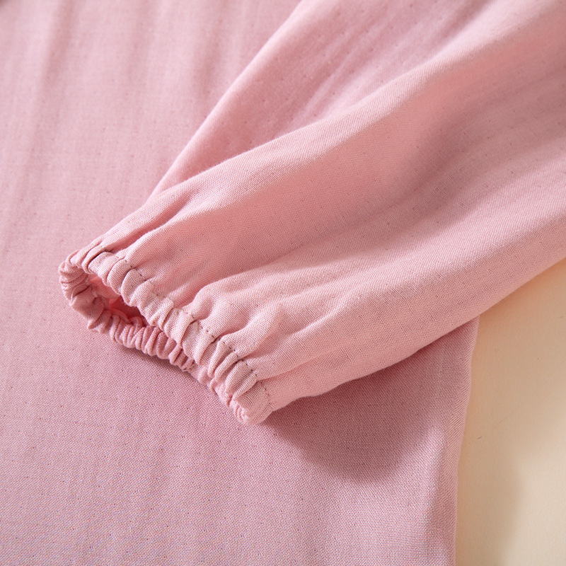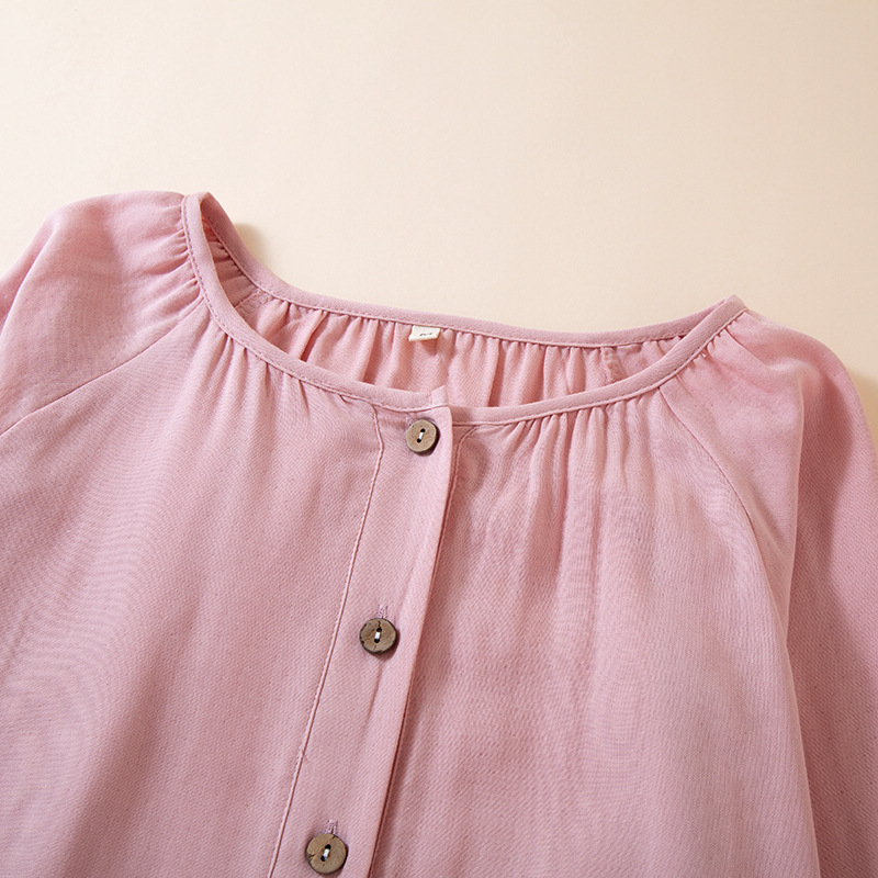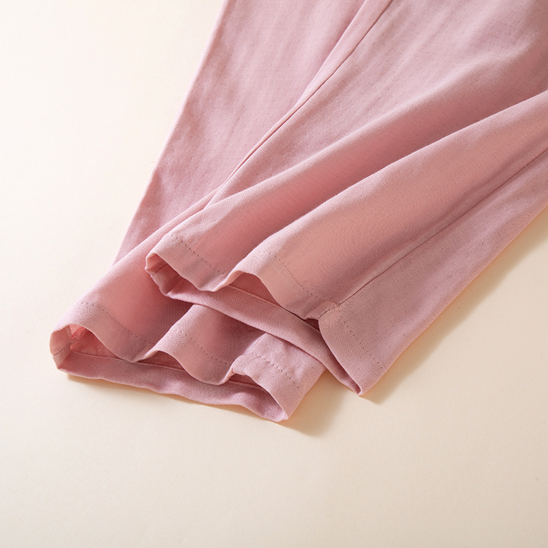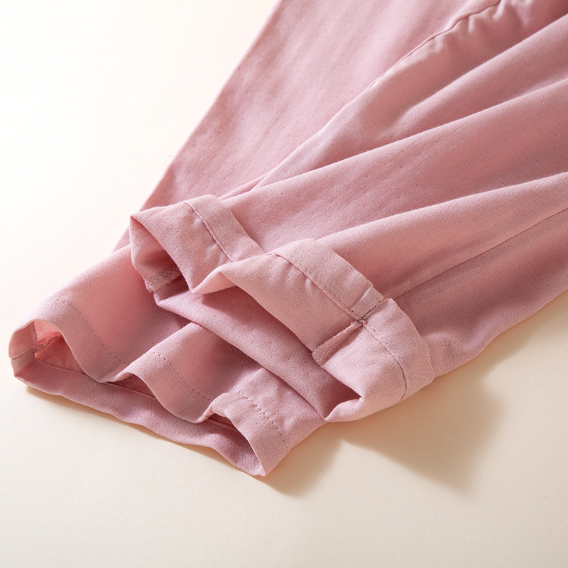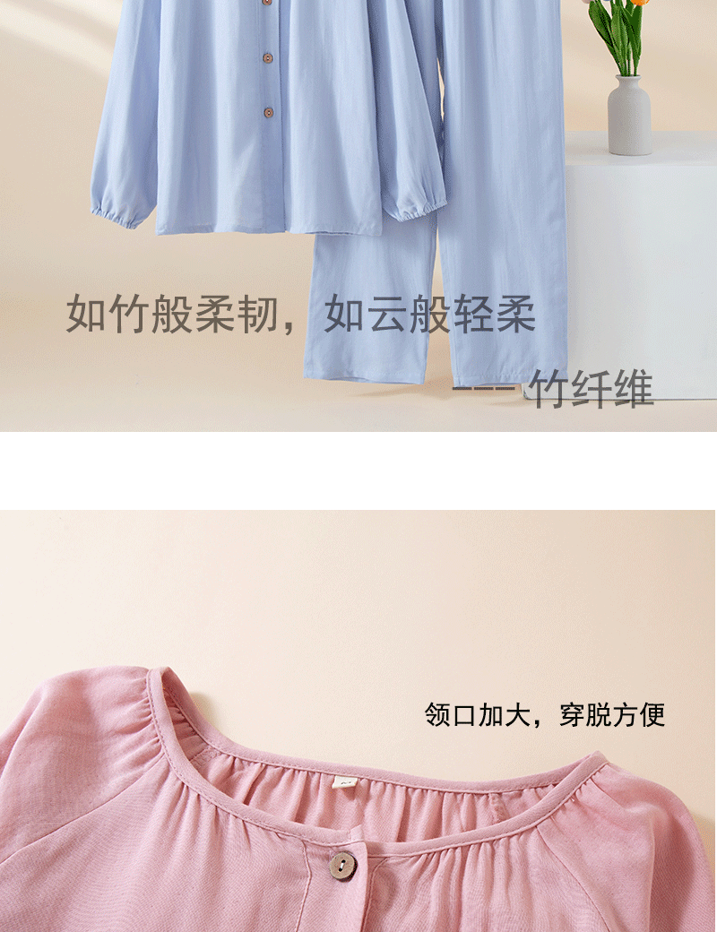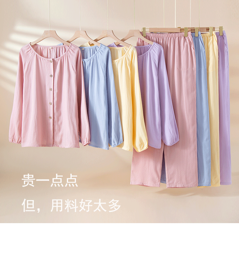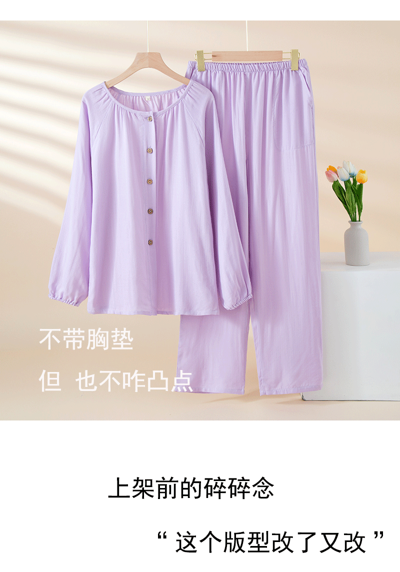 여성을위한 대나무 섬유 라운드 넥 잠옷 봄, 가을 얇은 에어컨 룸 코튼 카디건 긴팔 바지 통기성 솔리드 컬러 홈웨어 세트