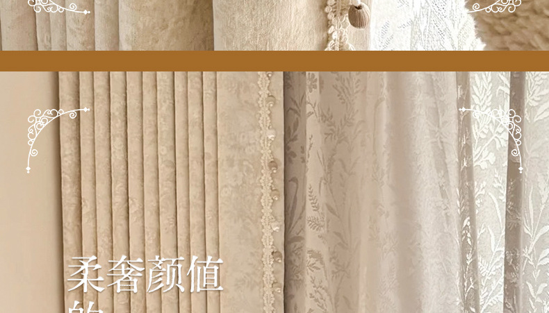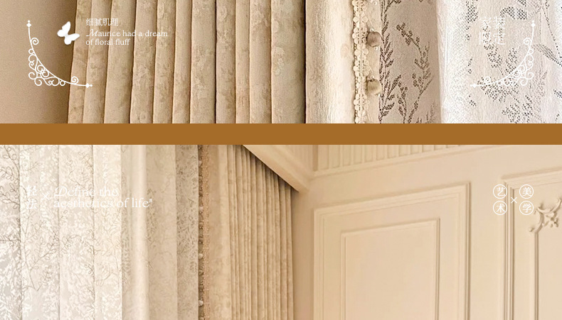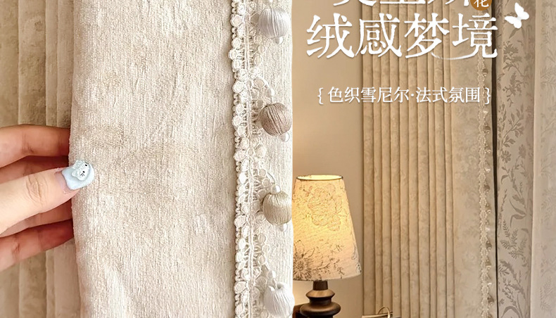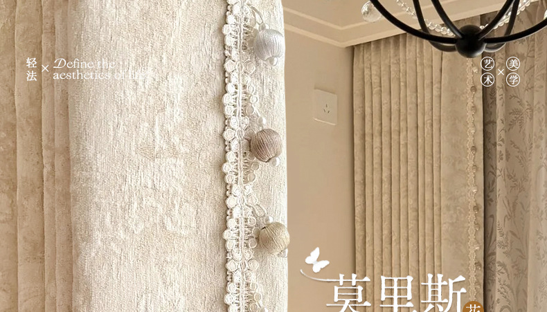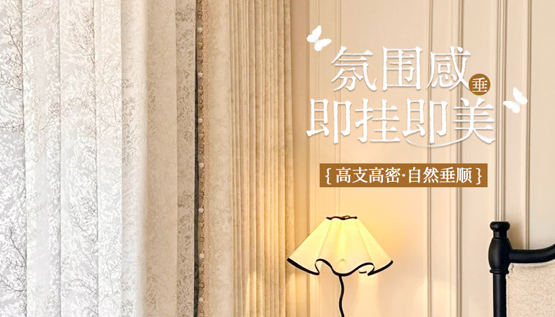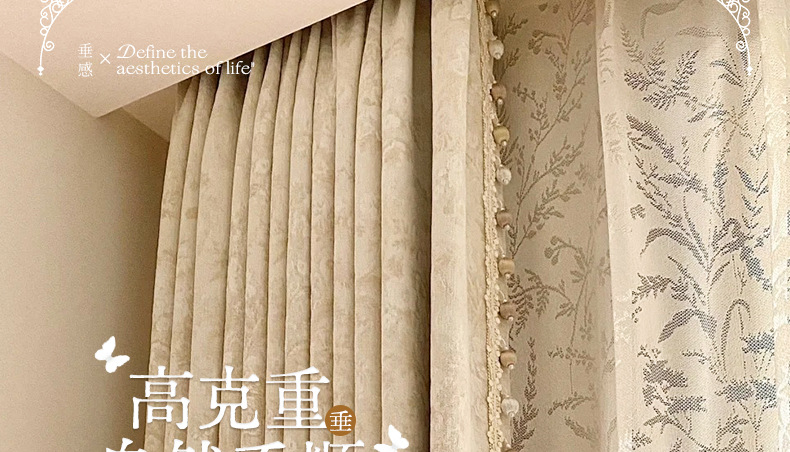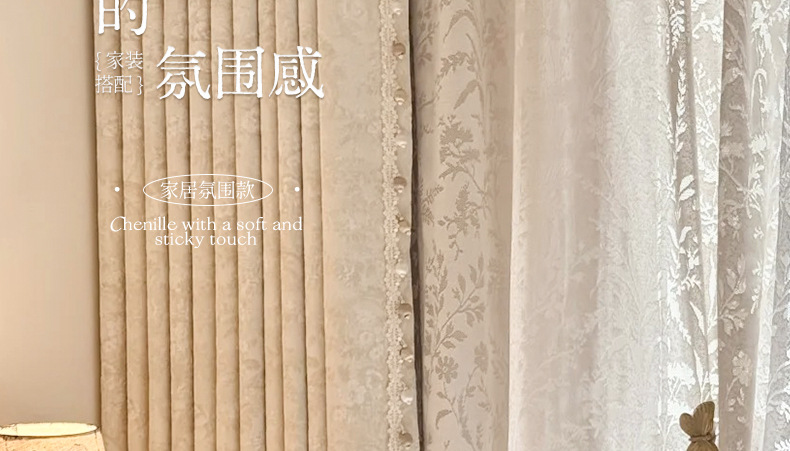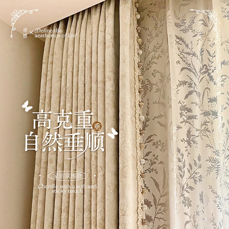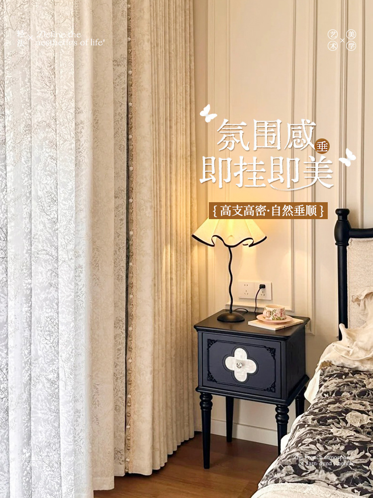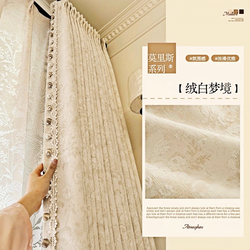 거실과 침실을 위한 모리스 플라워 블랙아웃 커튼 프렌치 크림 스타일 인터넷 연예인 새로운 고급 원사 염색 자카드 커튼스토어 가기