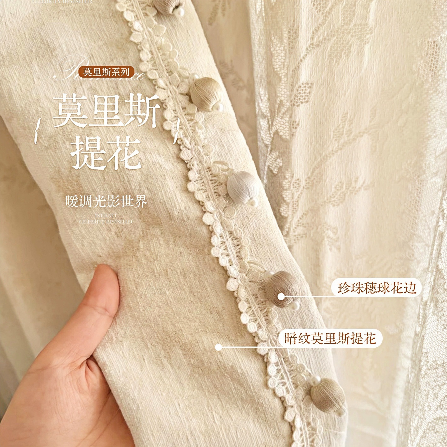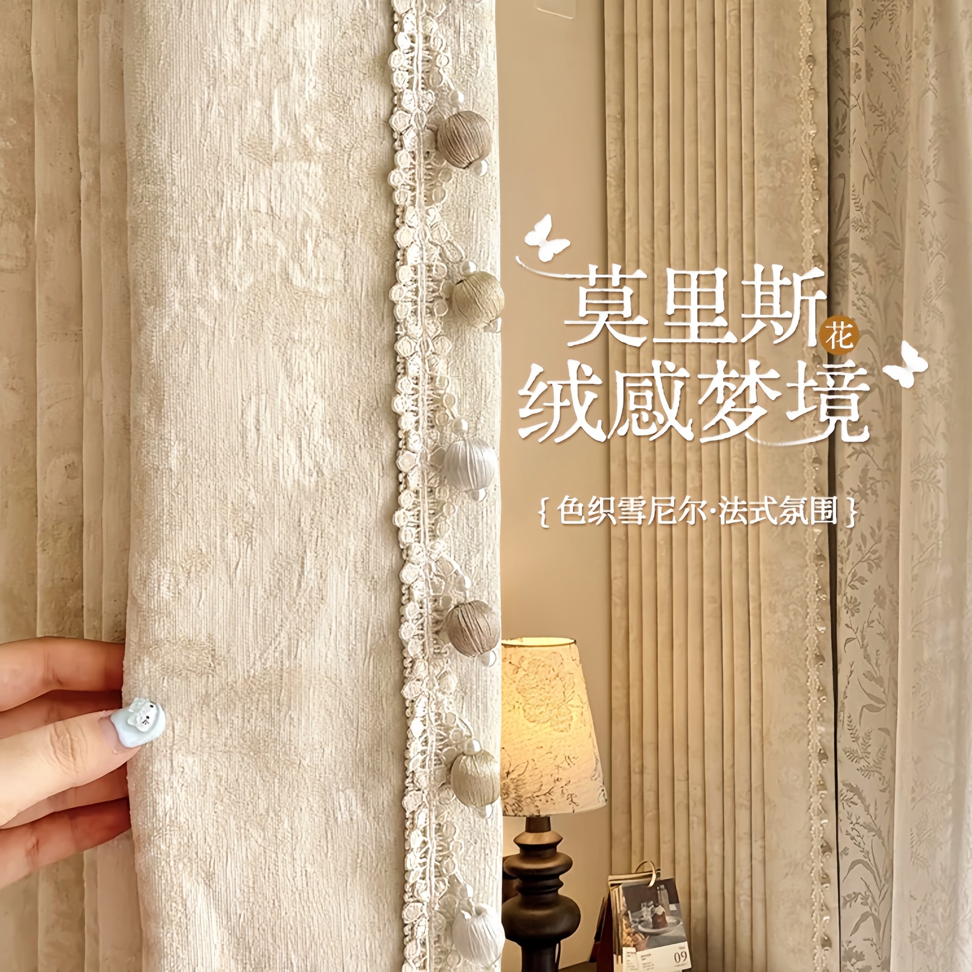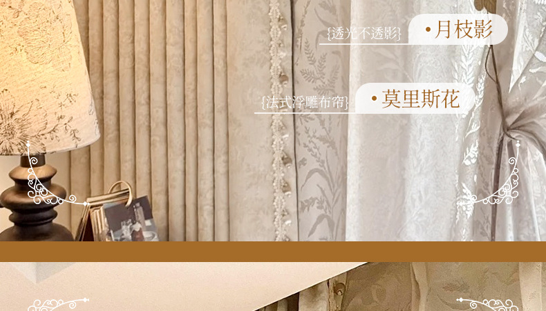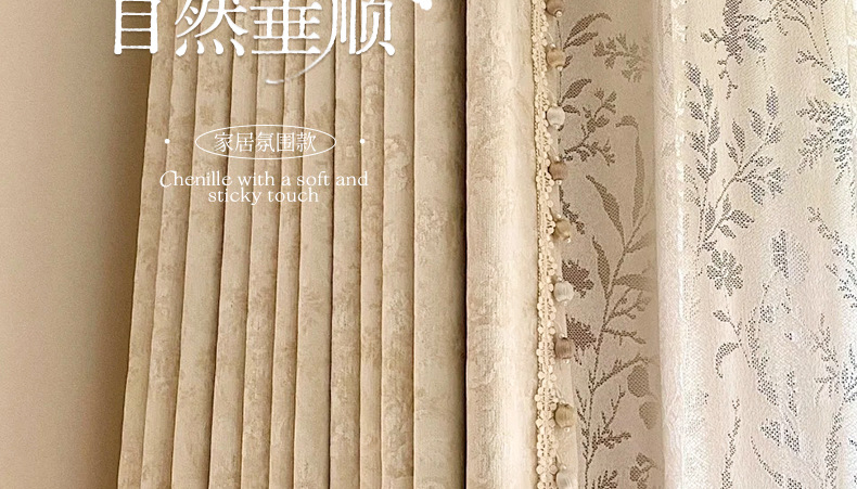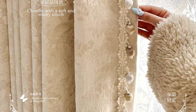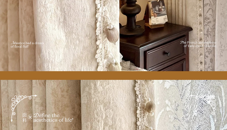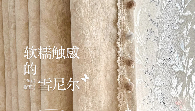 거실과 침실을 위한 모리스 플라워 블랙아웃 커튼 프렌치 크림 스타일 인터넷 연예인 새로운 고급 원사 염색 자카드 커튼스토어 가기