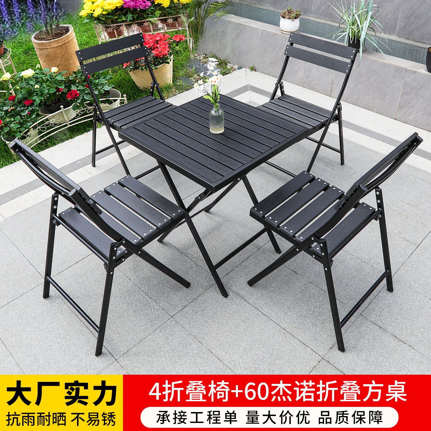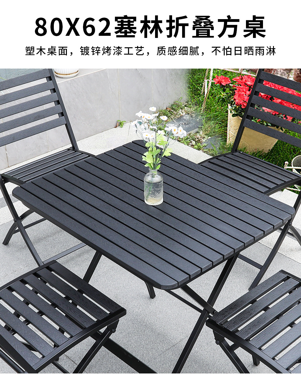 • 셀린 접이식 의자 4개 + 80X62 셀린 접이식 플라스틱 목재 긴 테이블