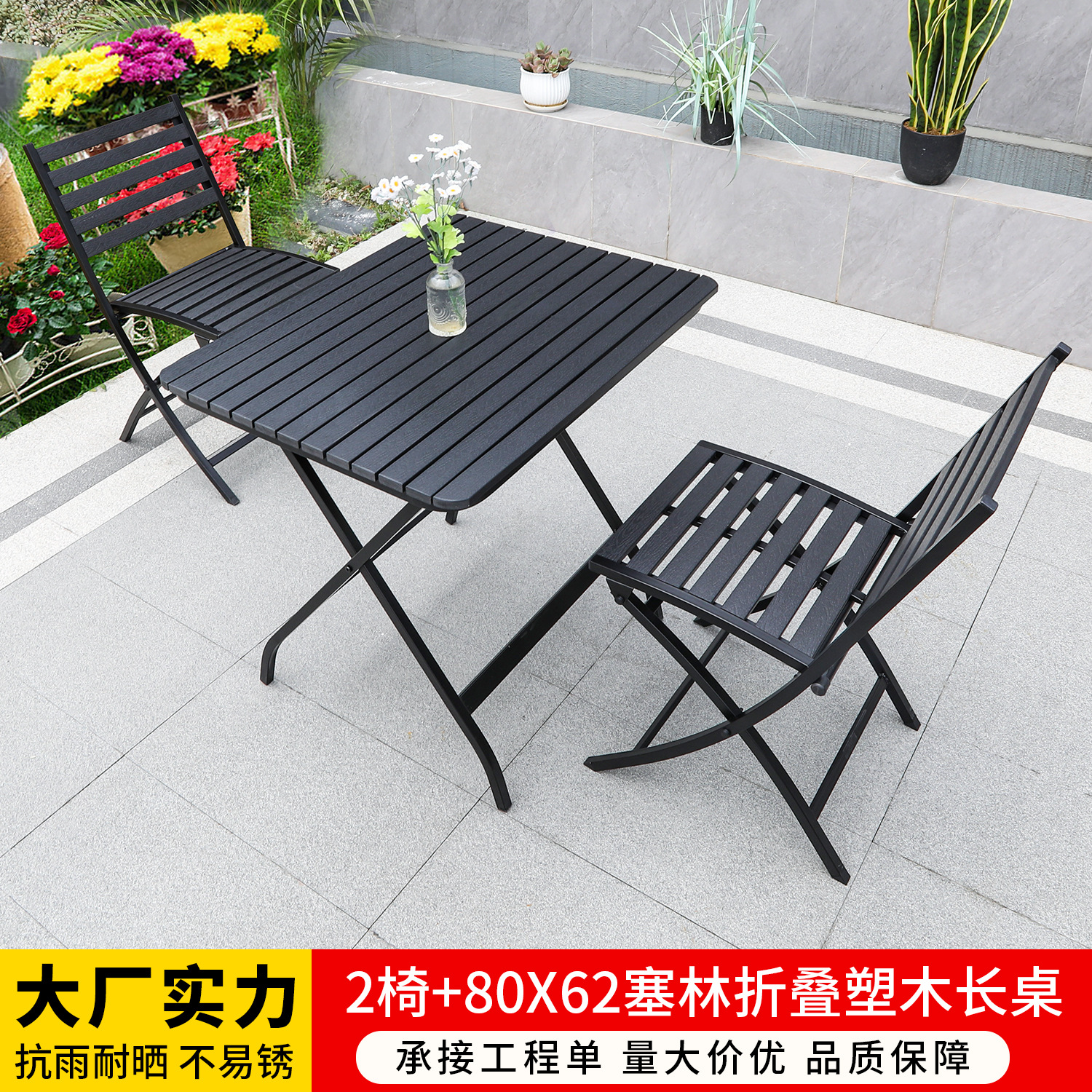 • 셀린 접이식 의자 2개 + 80X62 셀린 접이식 플라스틱 목재 긴 테이블