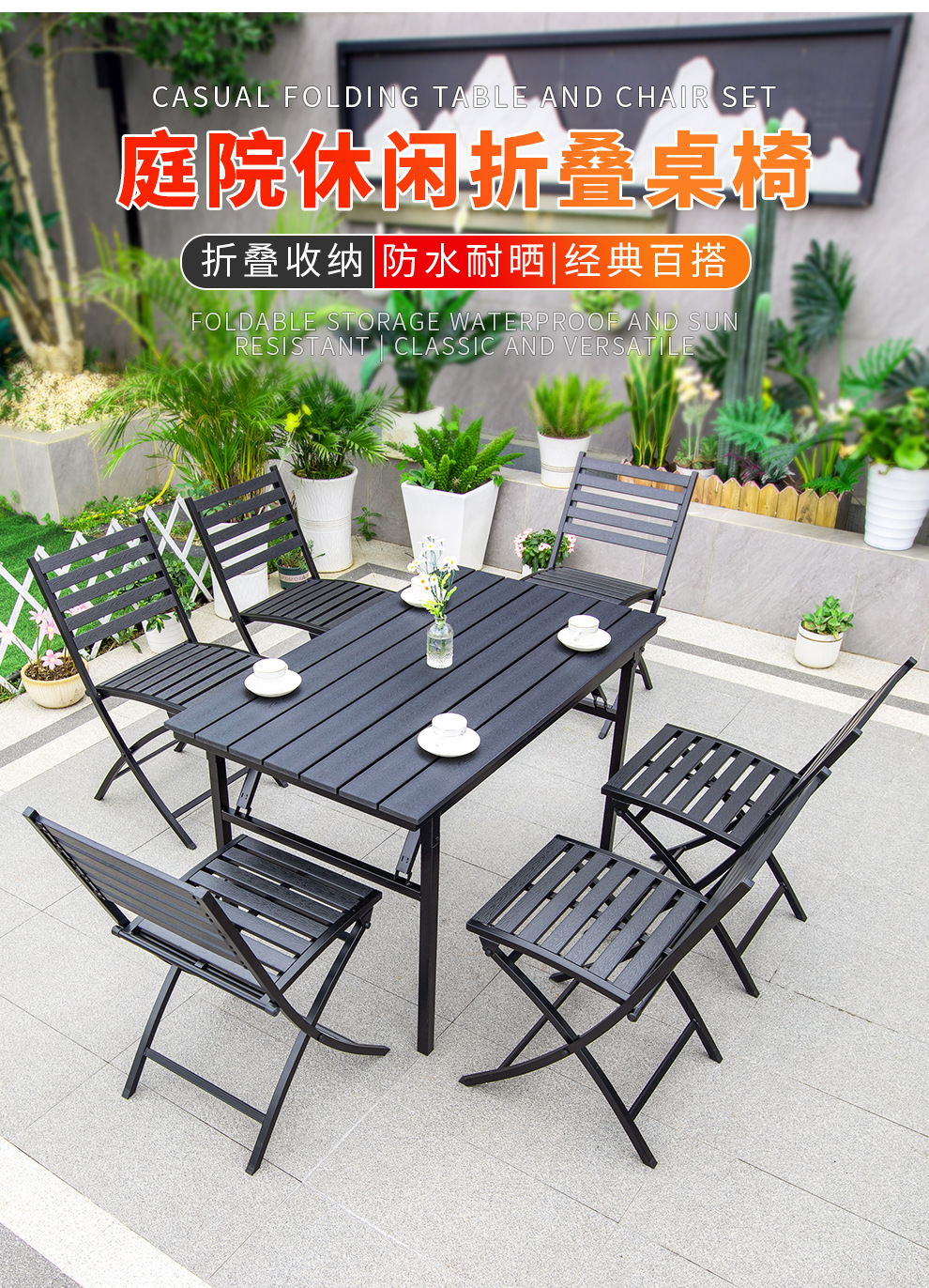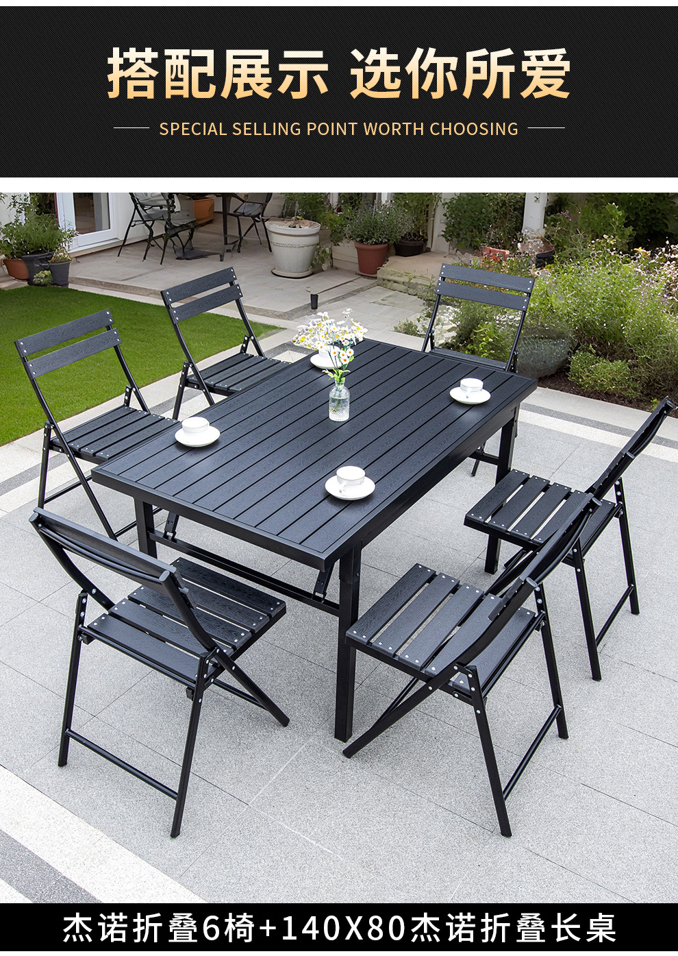 • 셀린 접이식 의자 6개 + 120X70 셀린 접이식 플라스틱 목재 긴 테이블