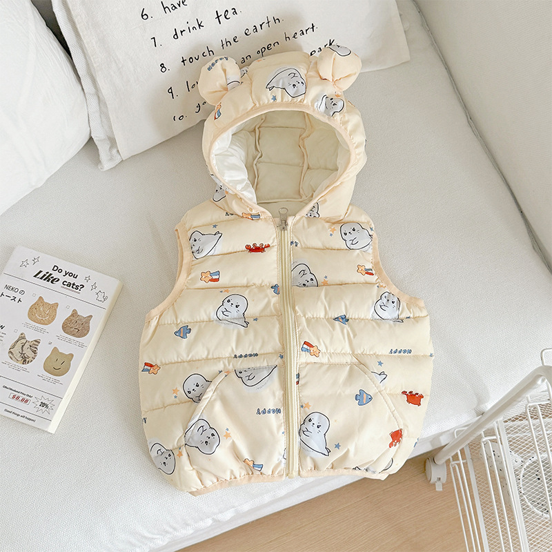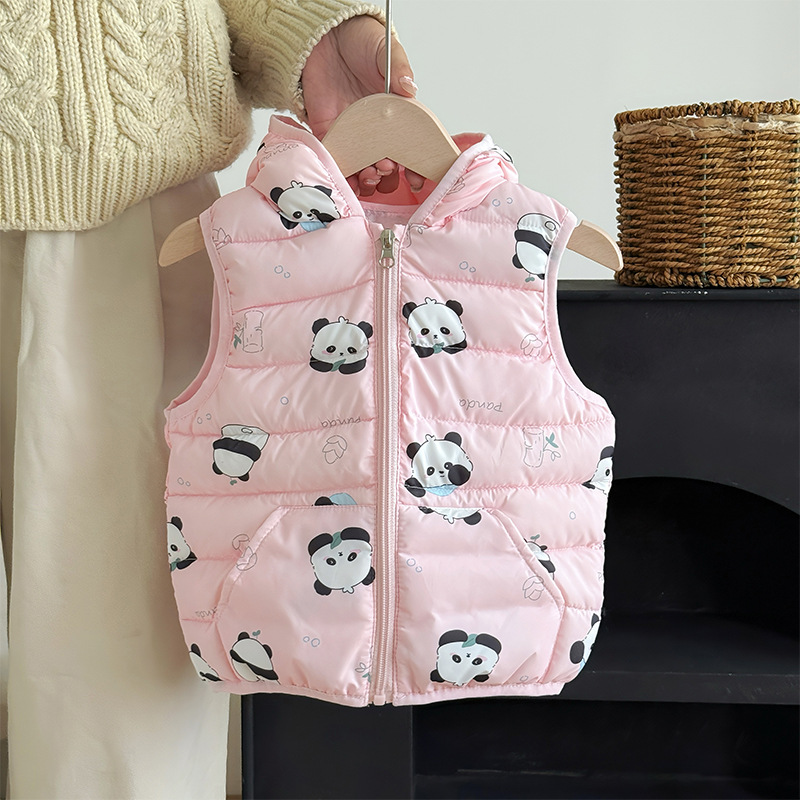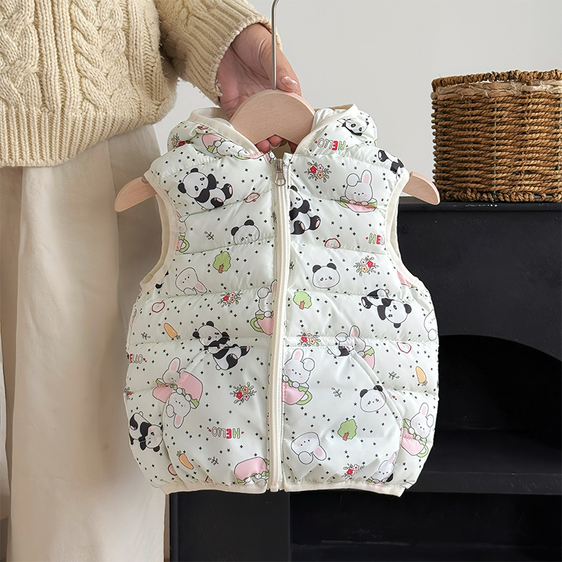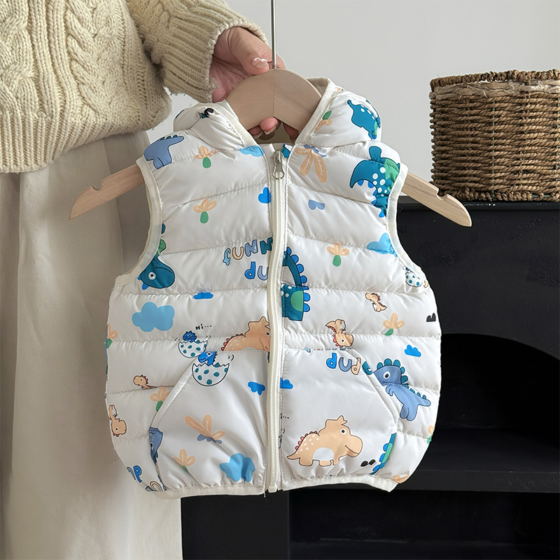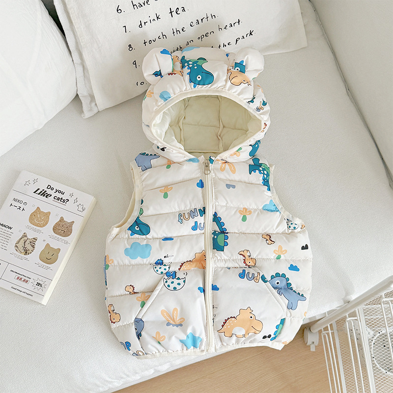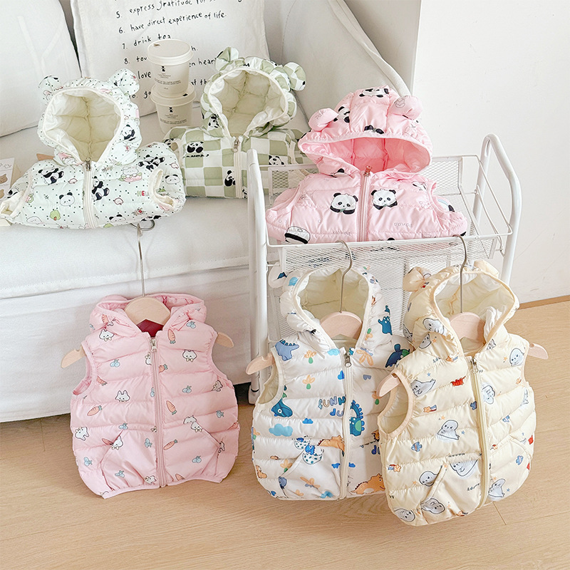 대외 무역 유아 및 어린이 가을, 겨울 퀼트 후드 포켓 조끼 남성과 여성 아기 따뜻한 조끼 조끼 면화 재킷스토어 가기