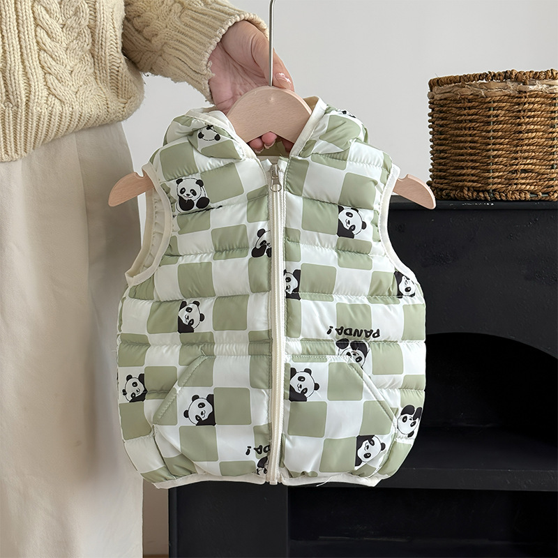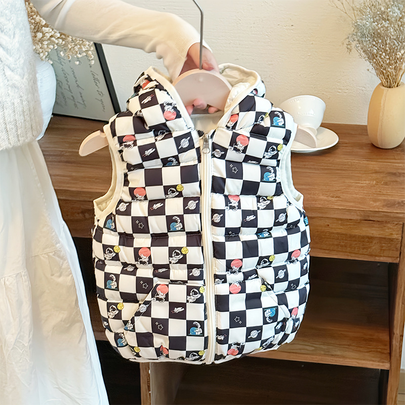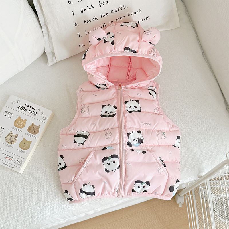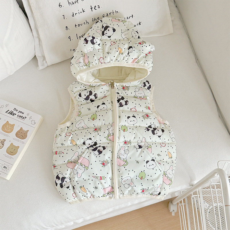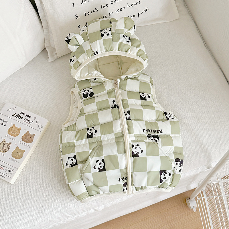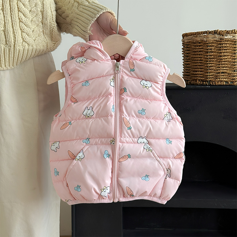 대외 무역 유아 및 어린이 가을, 겨울 퀼트 후드 포켓 조끼 남성과 여성 아기 따뜻한 조끼 조끼 면화 재킷스토어 가기