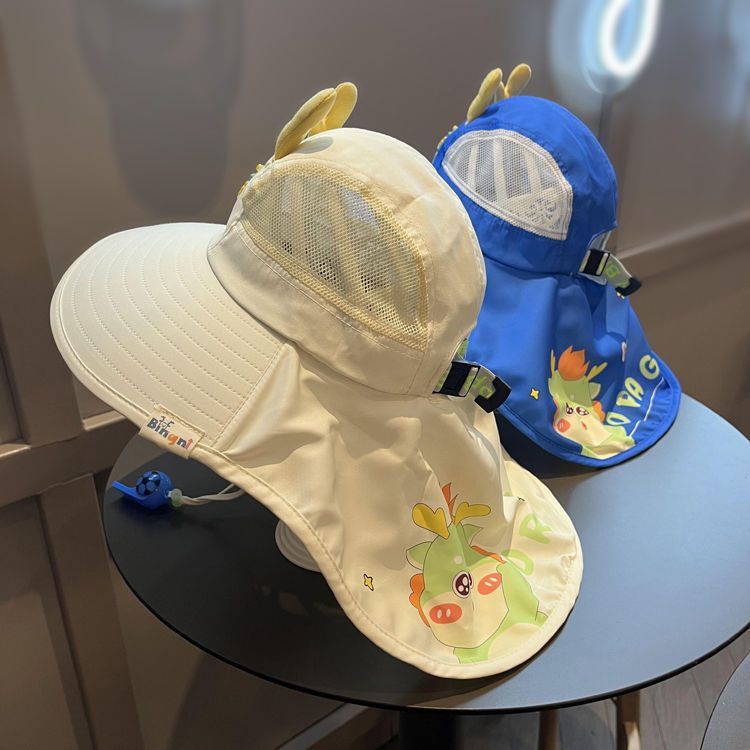 어린이용 태양 보호 숄 모자, 큰 어린이용 챙이 큰 태양 보호 해변 모자, 남성용 및 여성용 아기용 조명 태양 모자, Longyu스토어 가기