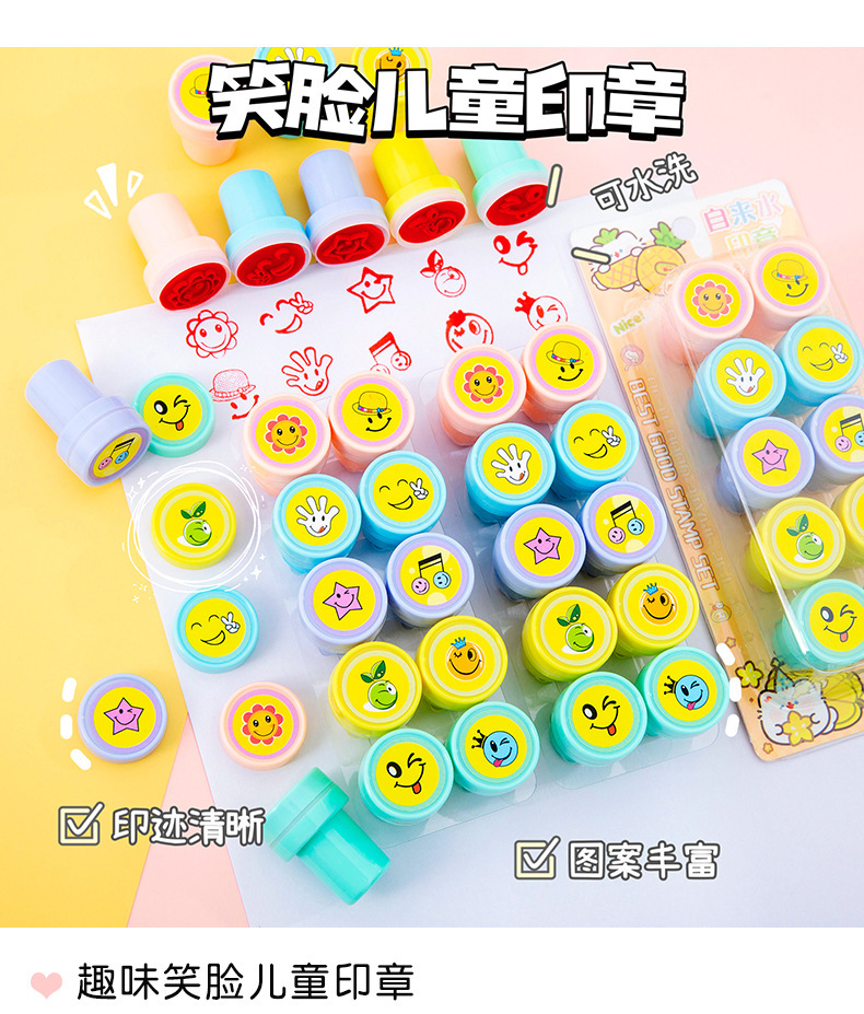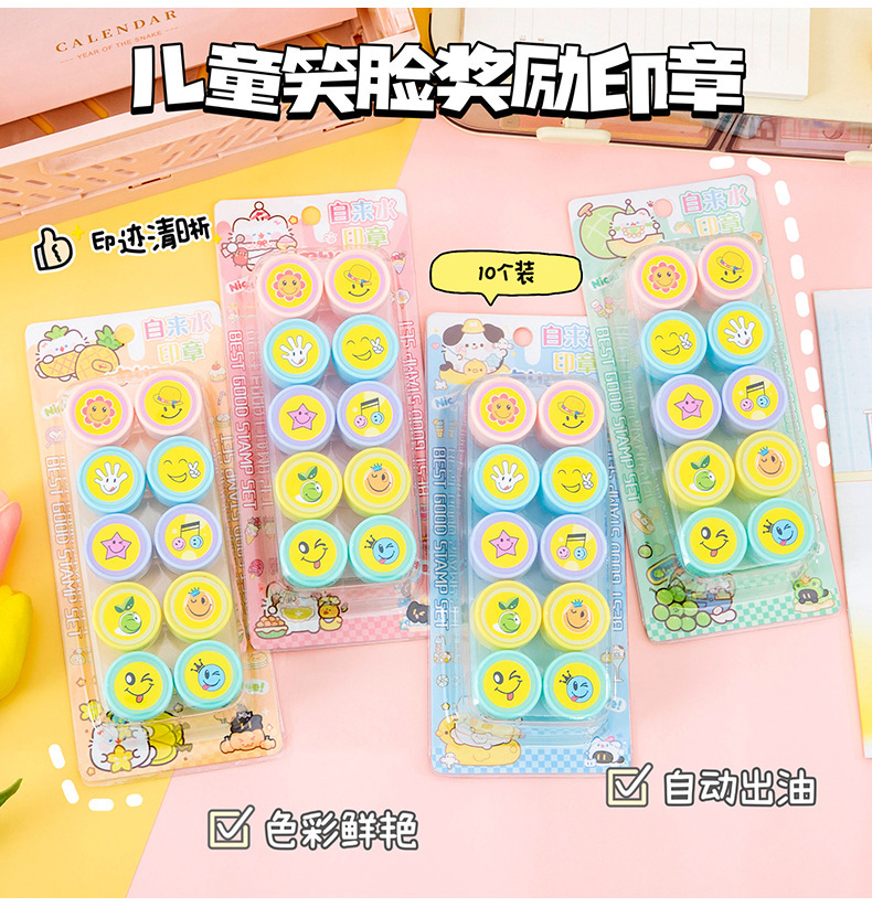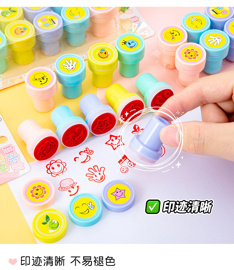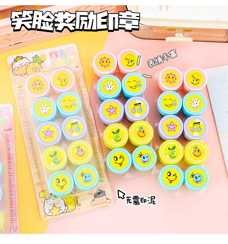 만화 웃는 얼굴 보상 스탬프 세트 어린이 포인트 격려 스탬프 귀여운 유치원 교사 칭찬 작은 메달