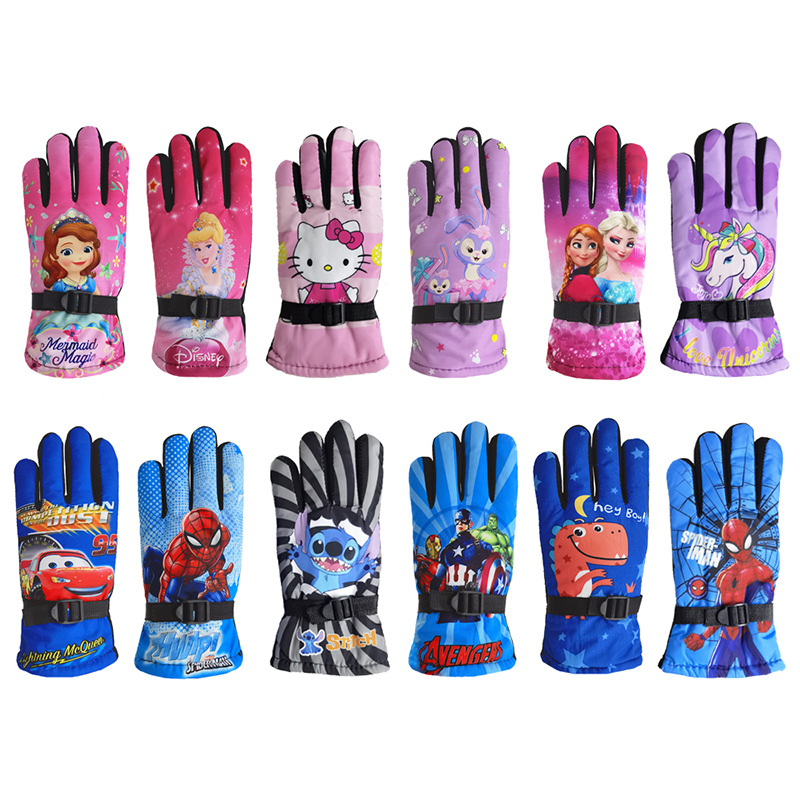 겨울 어린이 스키 장갑 야외 방풍 플러스 벨벳 두꺼운 따뜻한 만화 남성과 여성의 어린이 장갑 도매