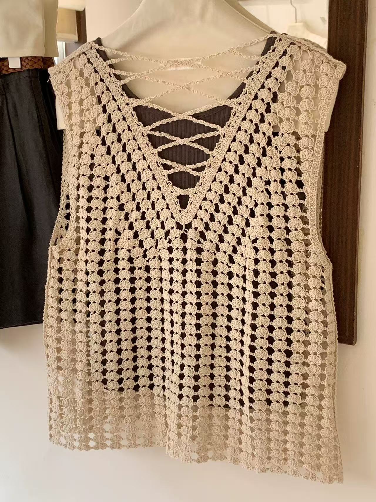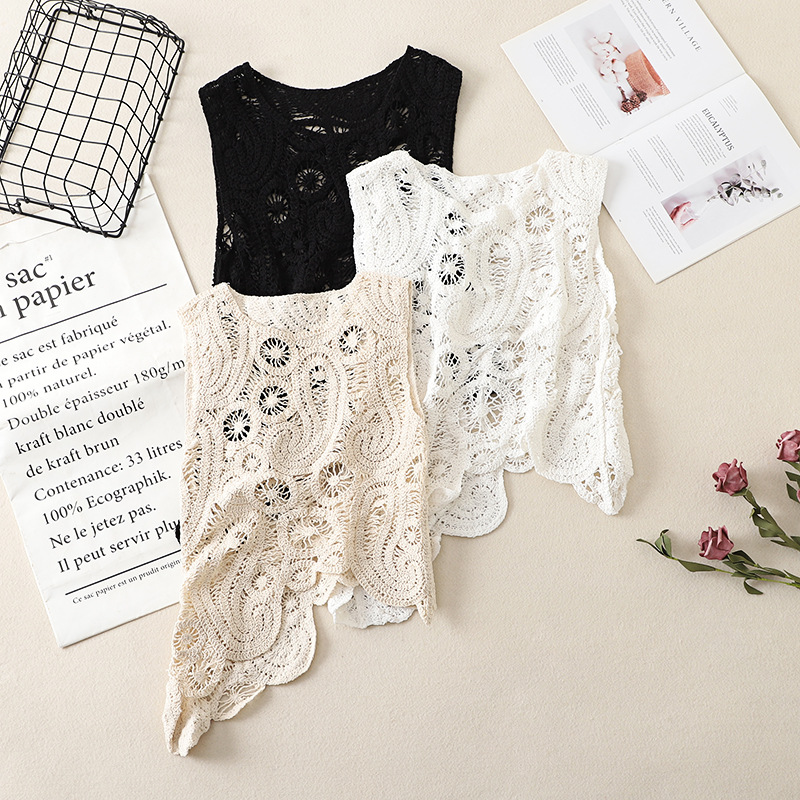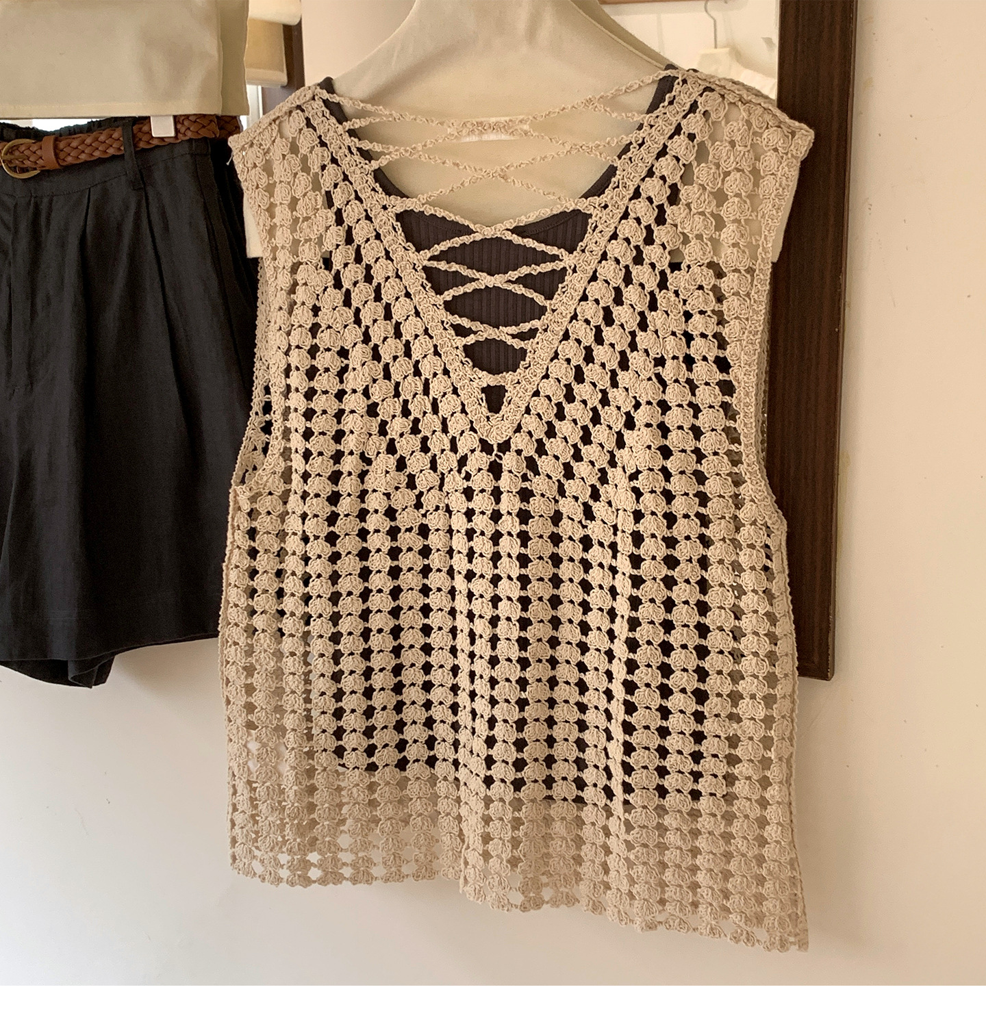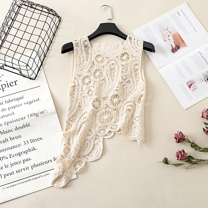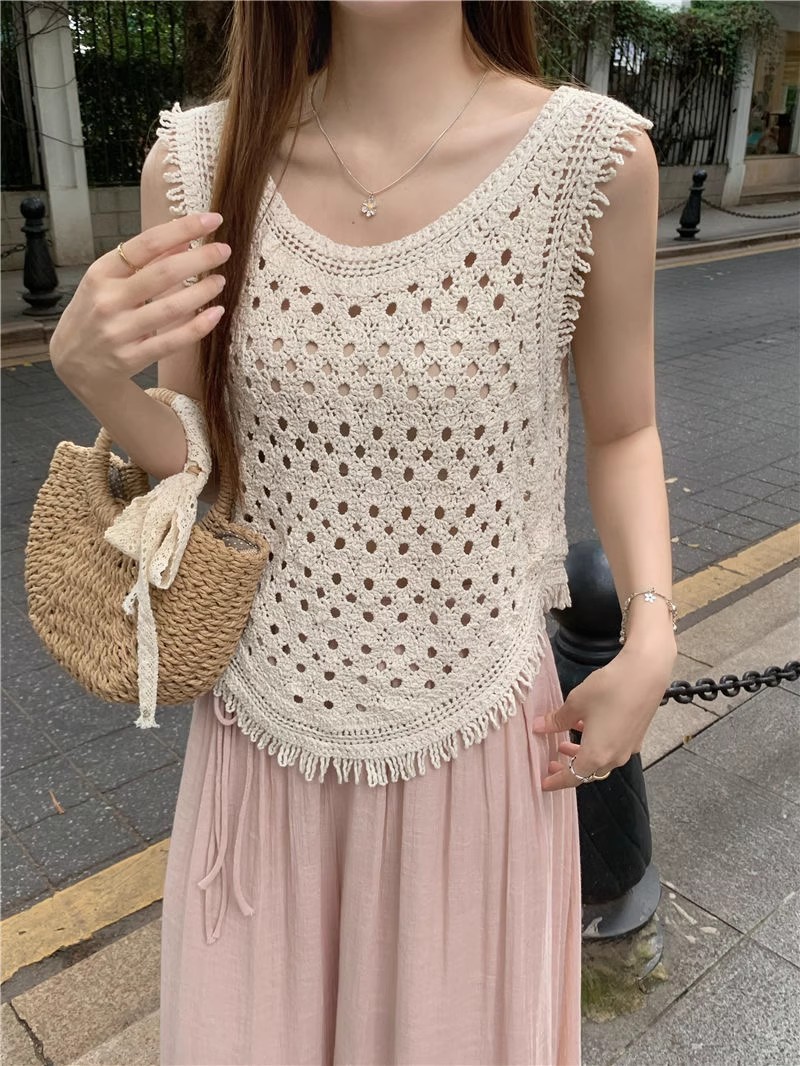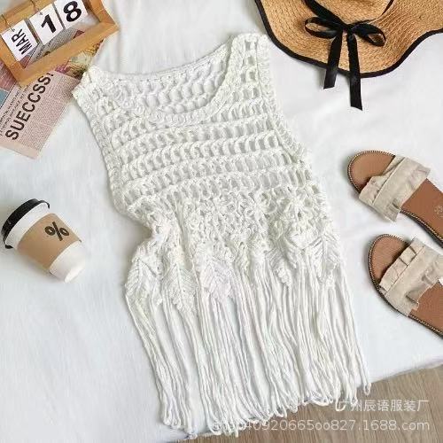 여성을위한 후크 패턴 중공 니트 조끼 여름 새로운 보헤미안 리조트 스타일 민소매 조끼 탑 겉옷
