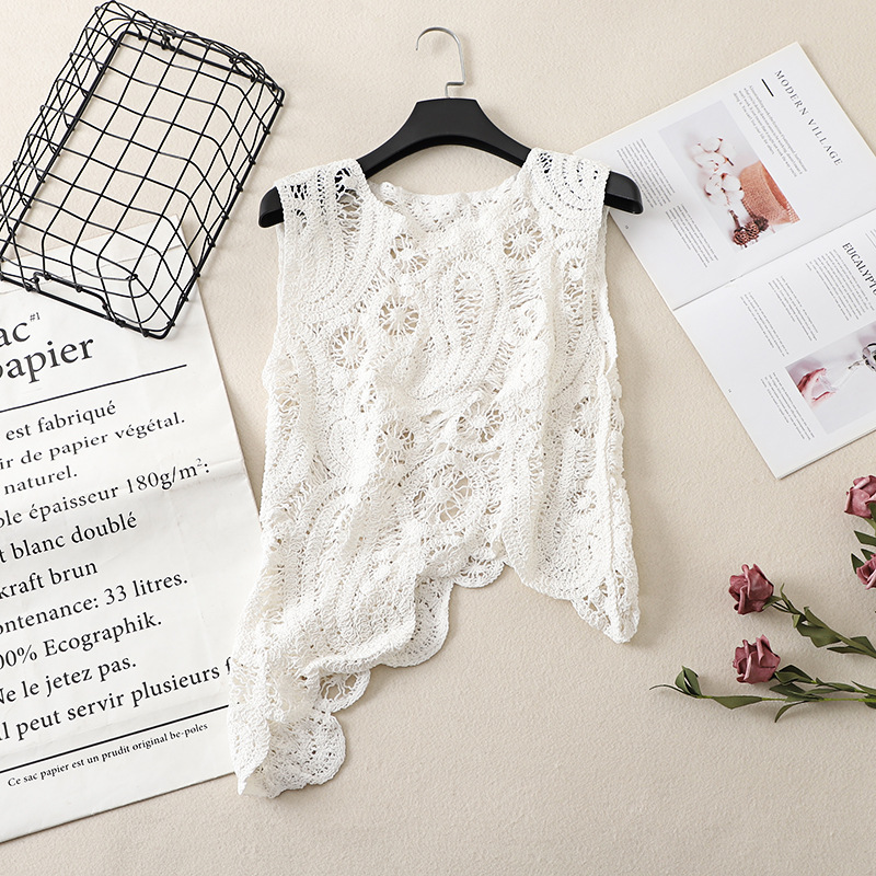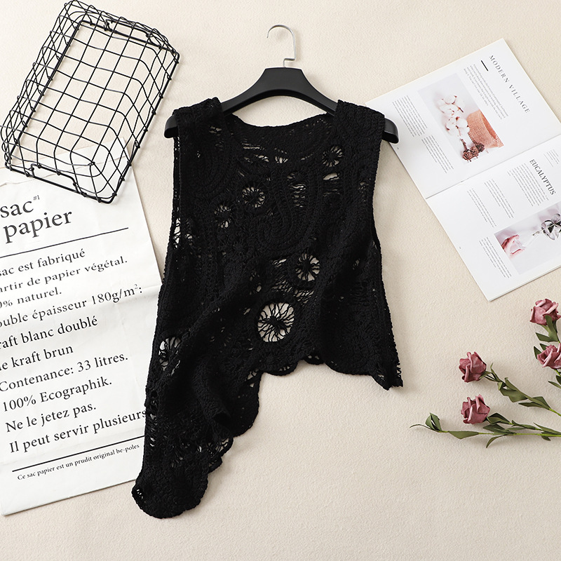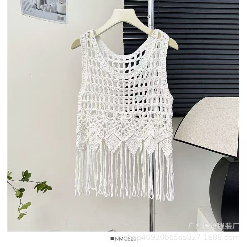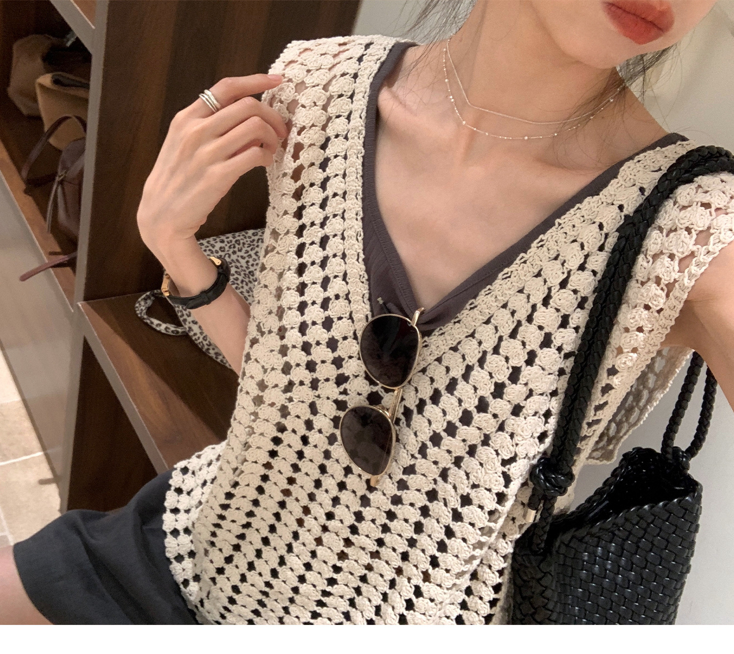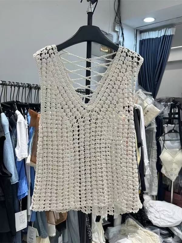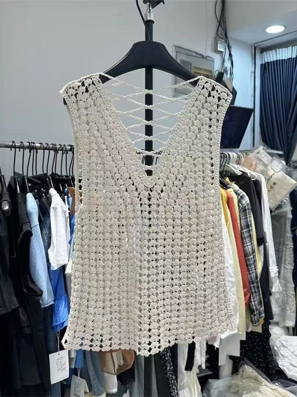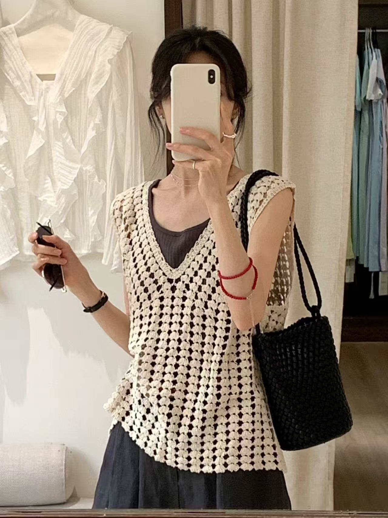 여성을위한 후크 패턴 중공 니트 조끼 여름 새로운 보헤미안 리조트 스타일 민소매 조끼 탑 겉옷