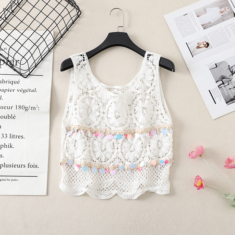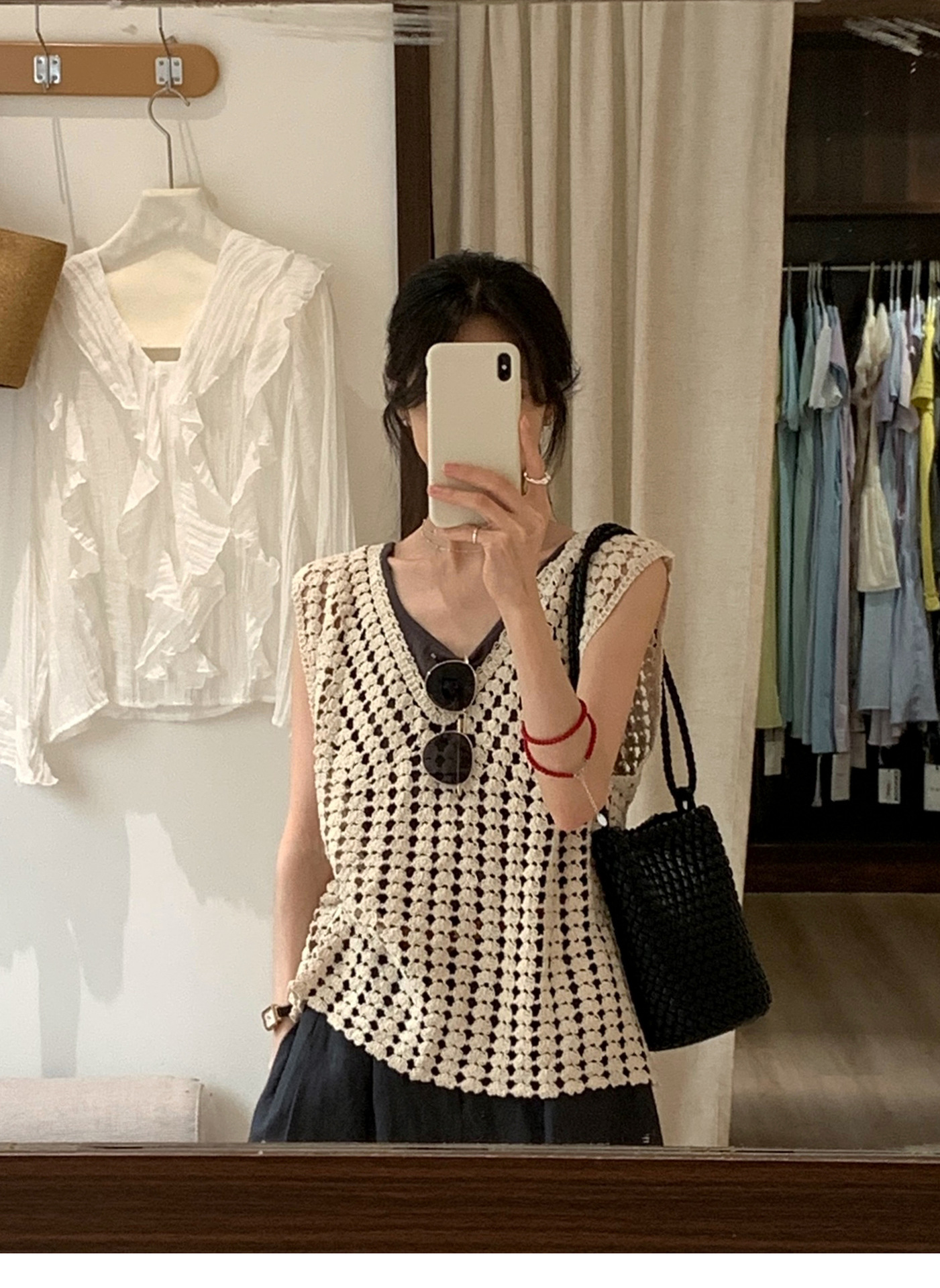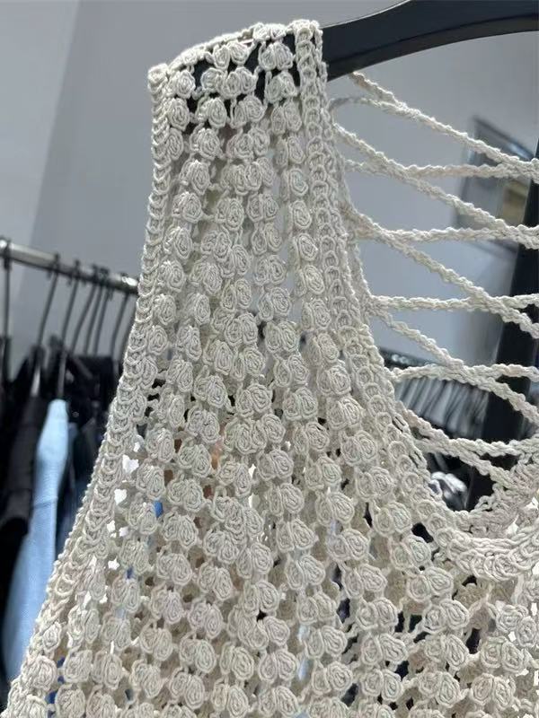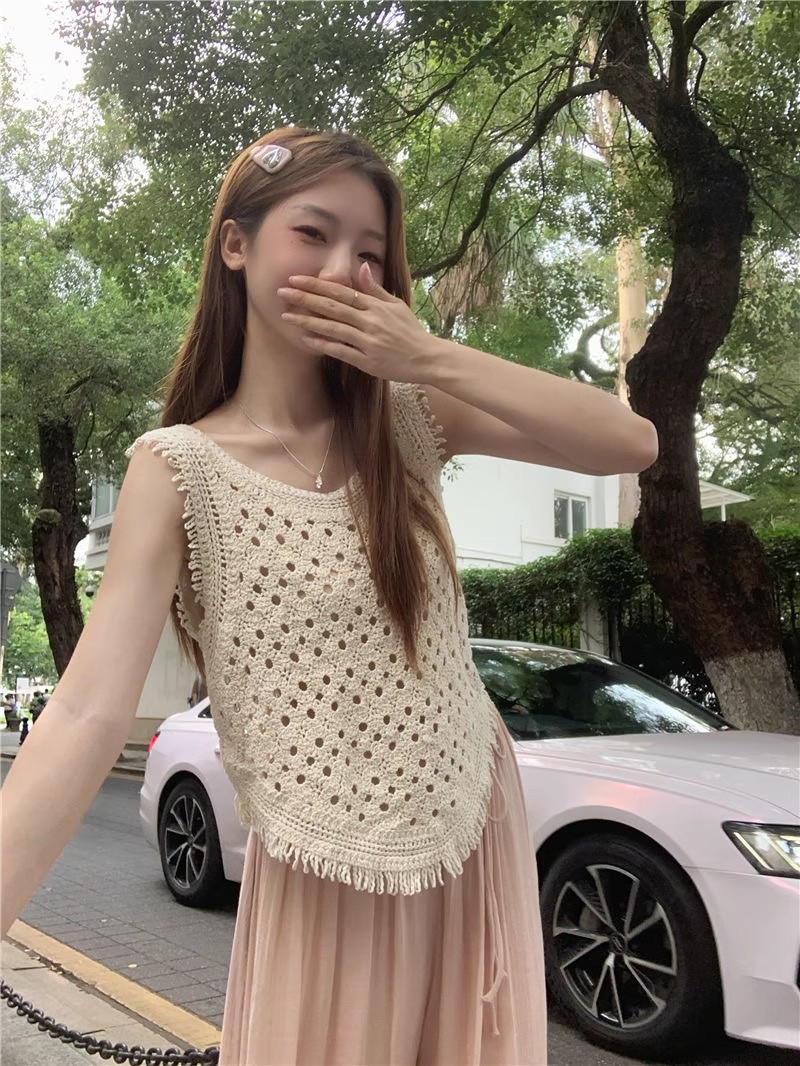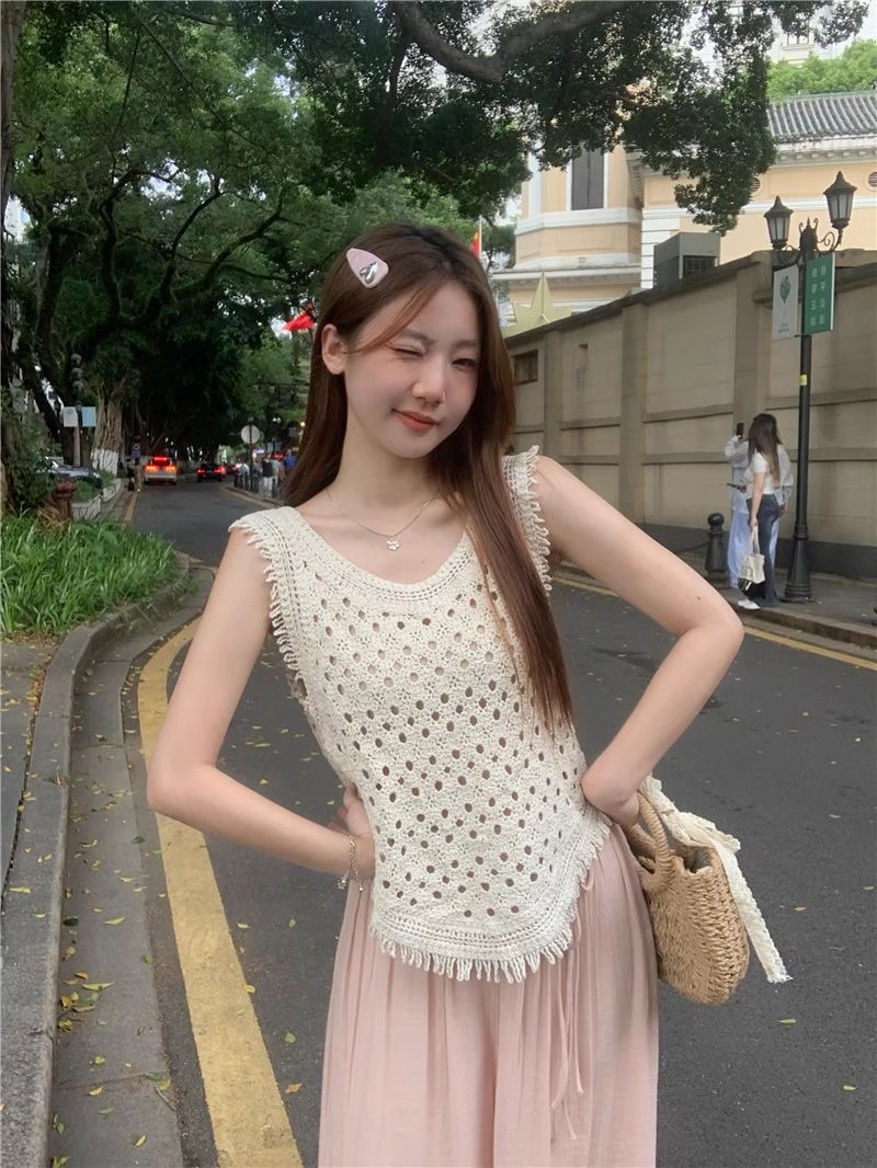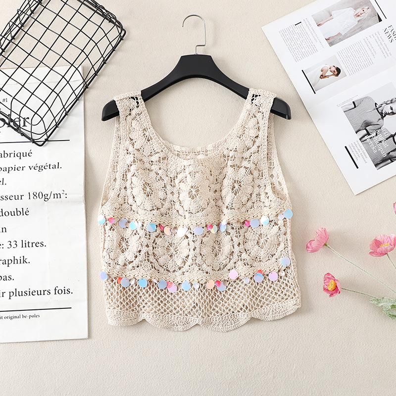 여성을위한 후크 패턴 중공 니트 조끼 여름 새로운 보헤미안 리조트 스타일 민소매 조끼 탑 겉옷