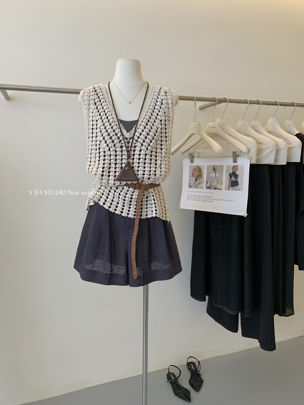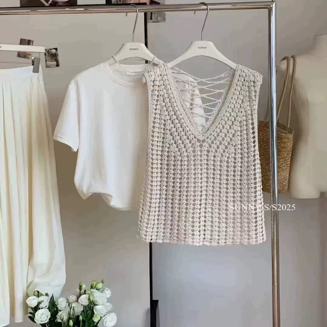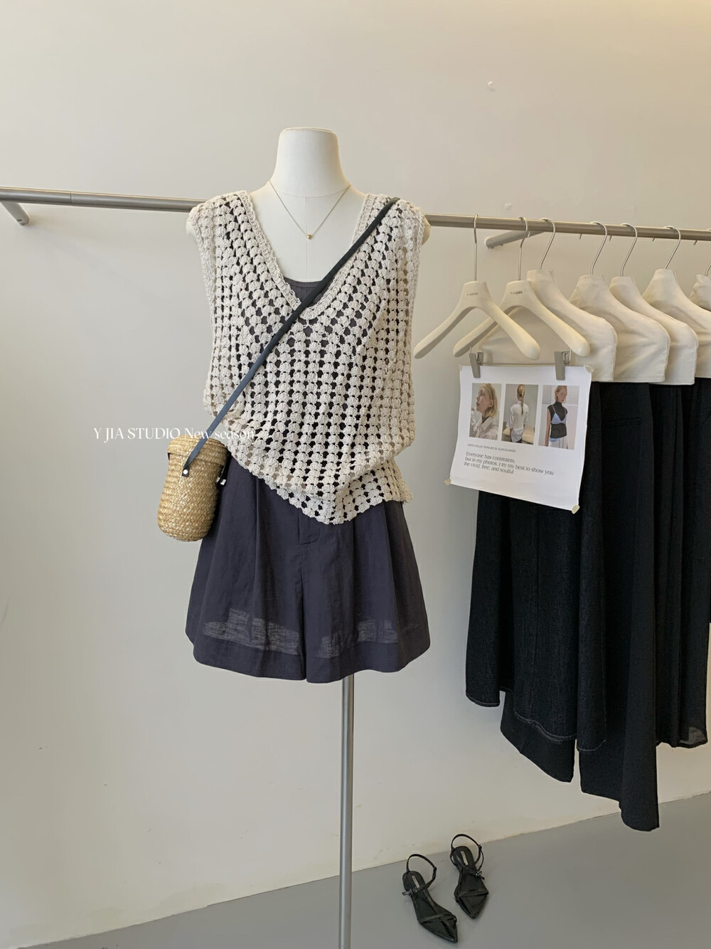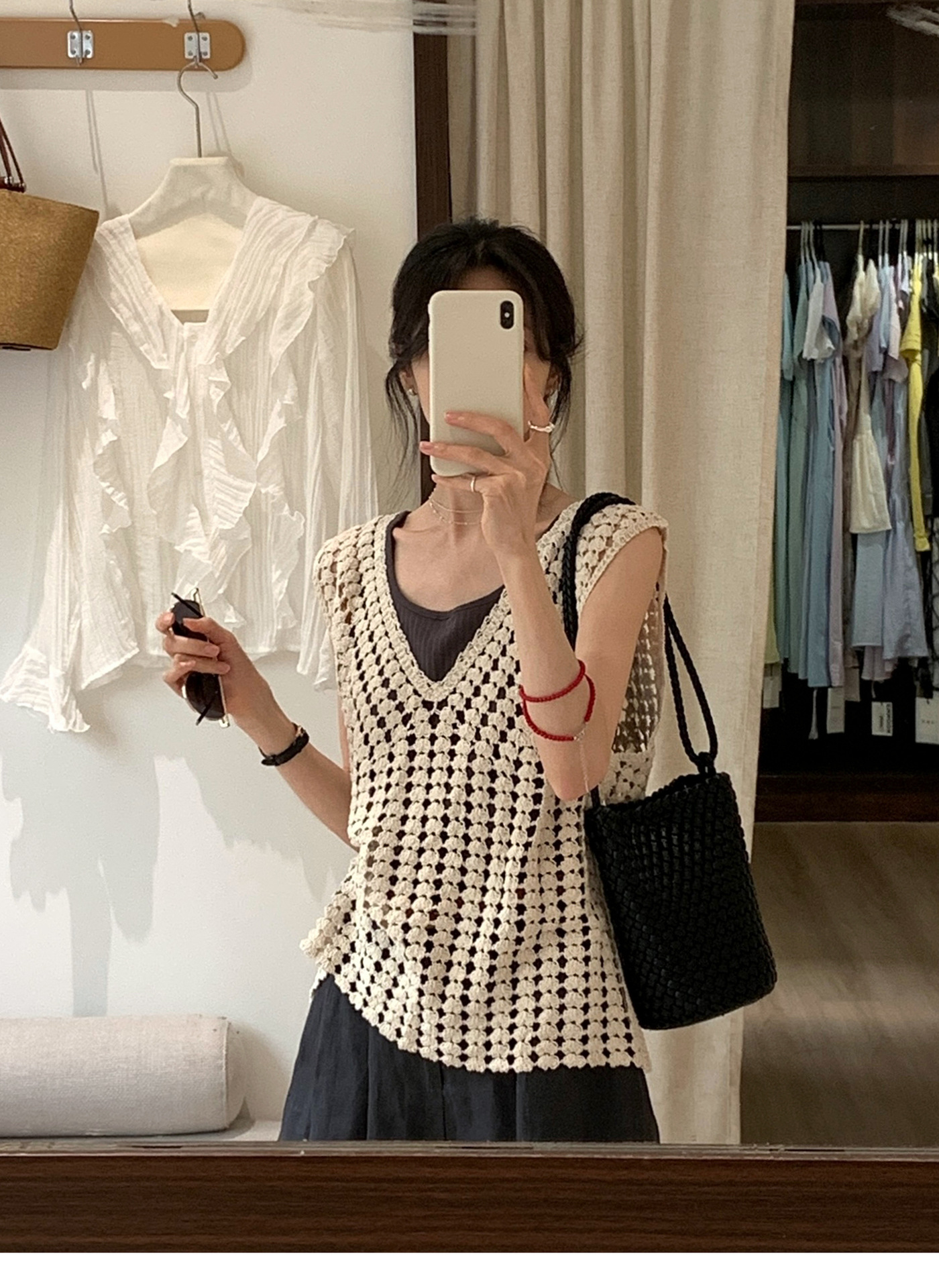 여성을위한 후크 패턴 중공 니트 조끼 여름 새로운 보헤미안 리조트 스타일 민소매 조끼 탑 겉옷