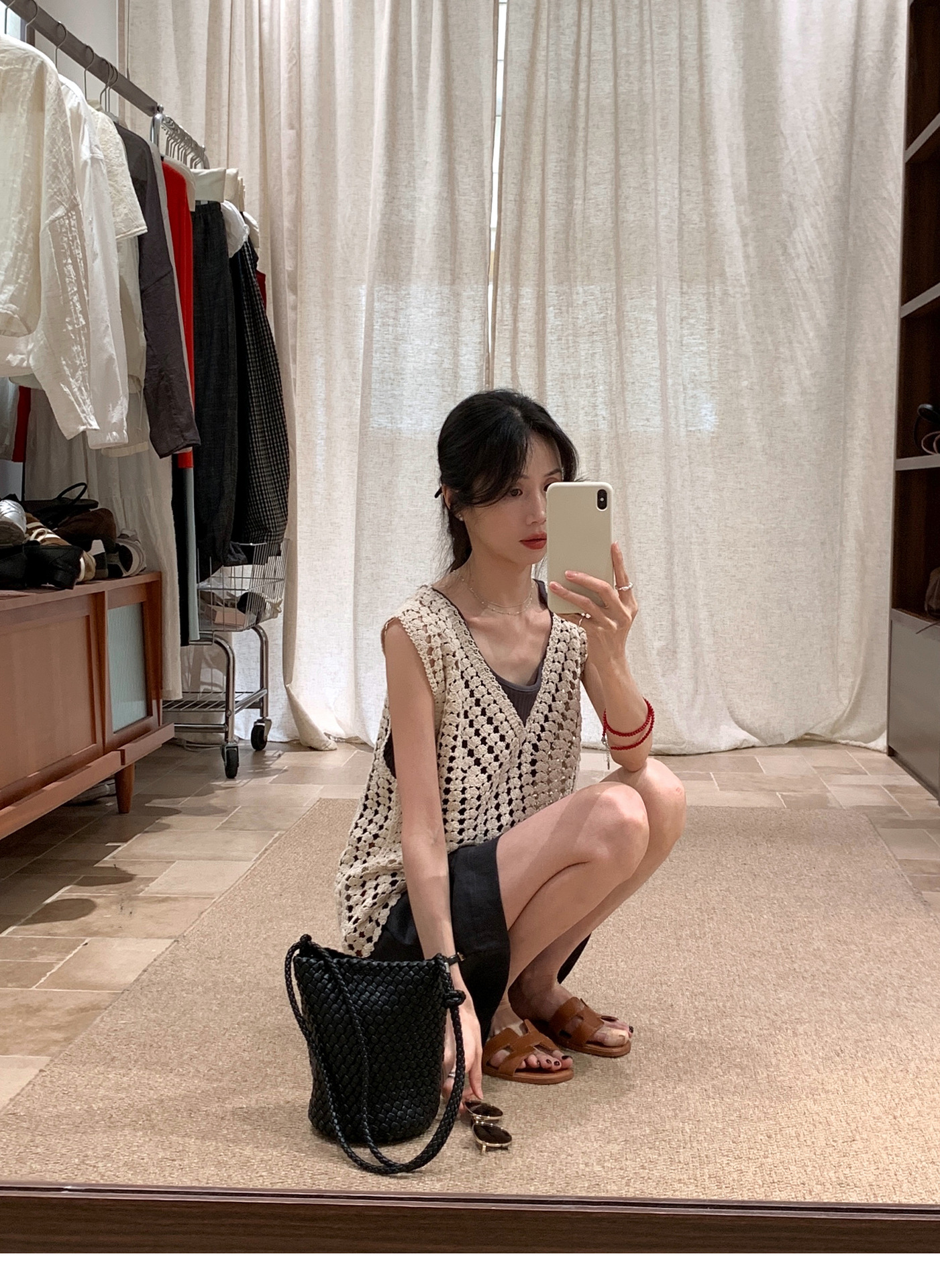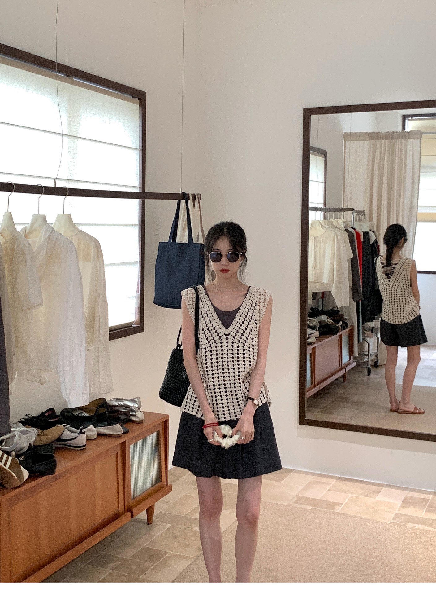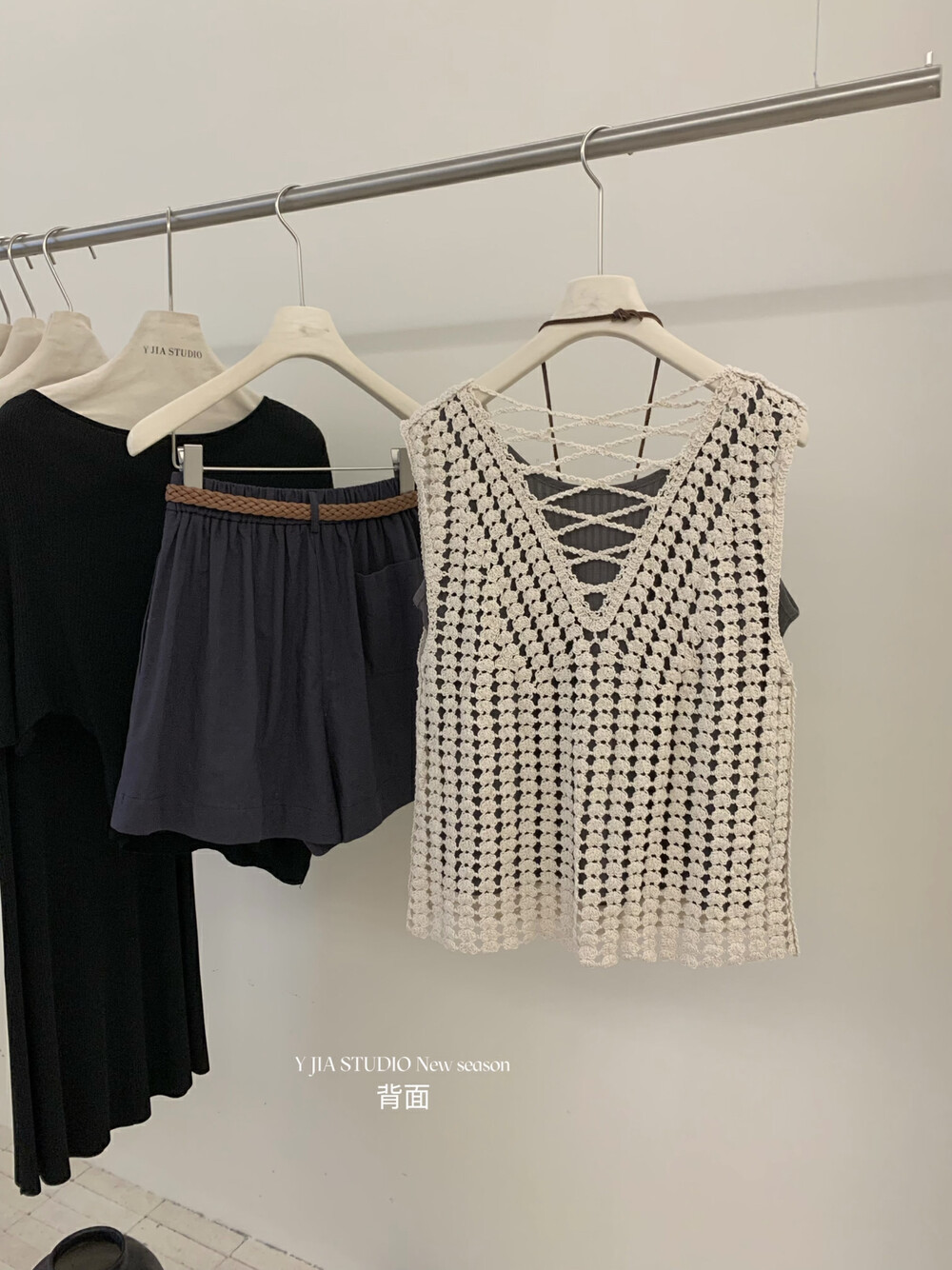 여성을위한 후크 패턴 중공 니트 조끼 여름 새로운 보헤미안 리조트 스타일 민소매 조끼 탑 겉옷스토어 가기