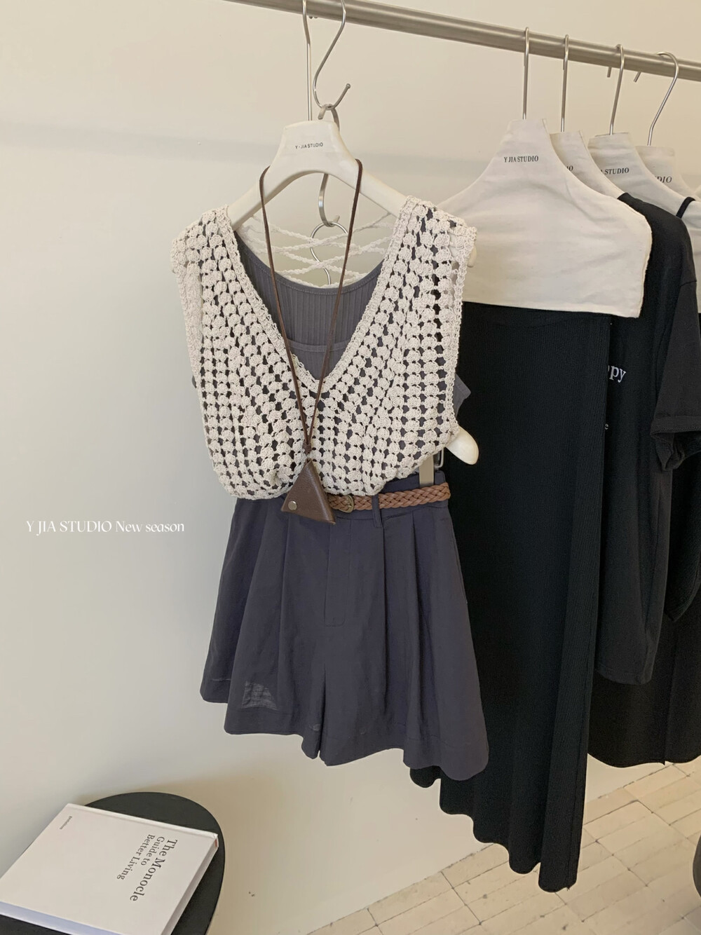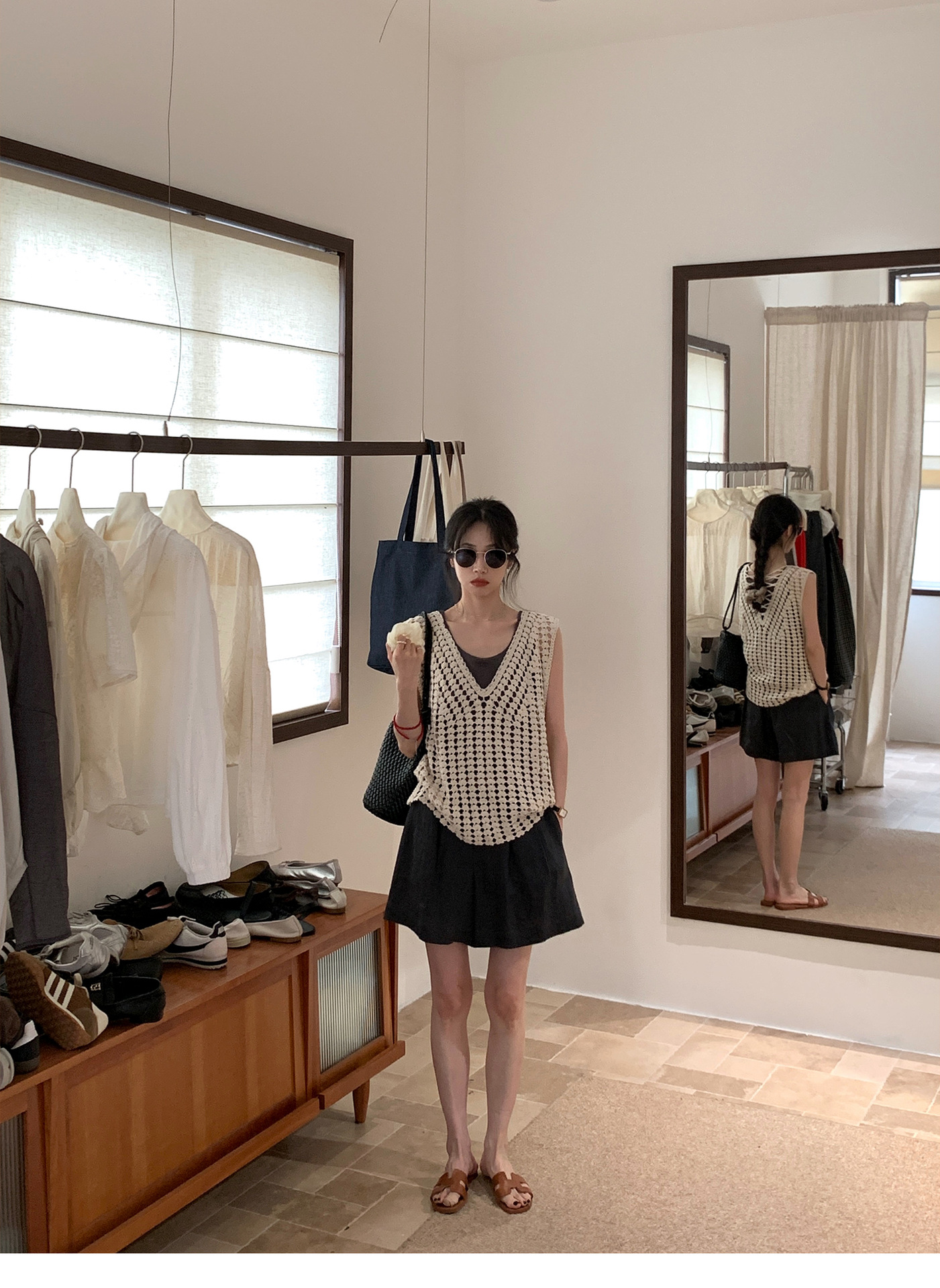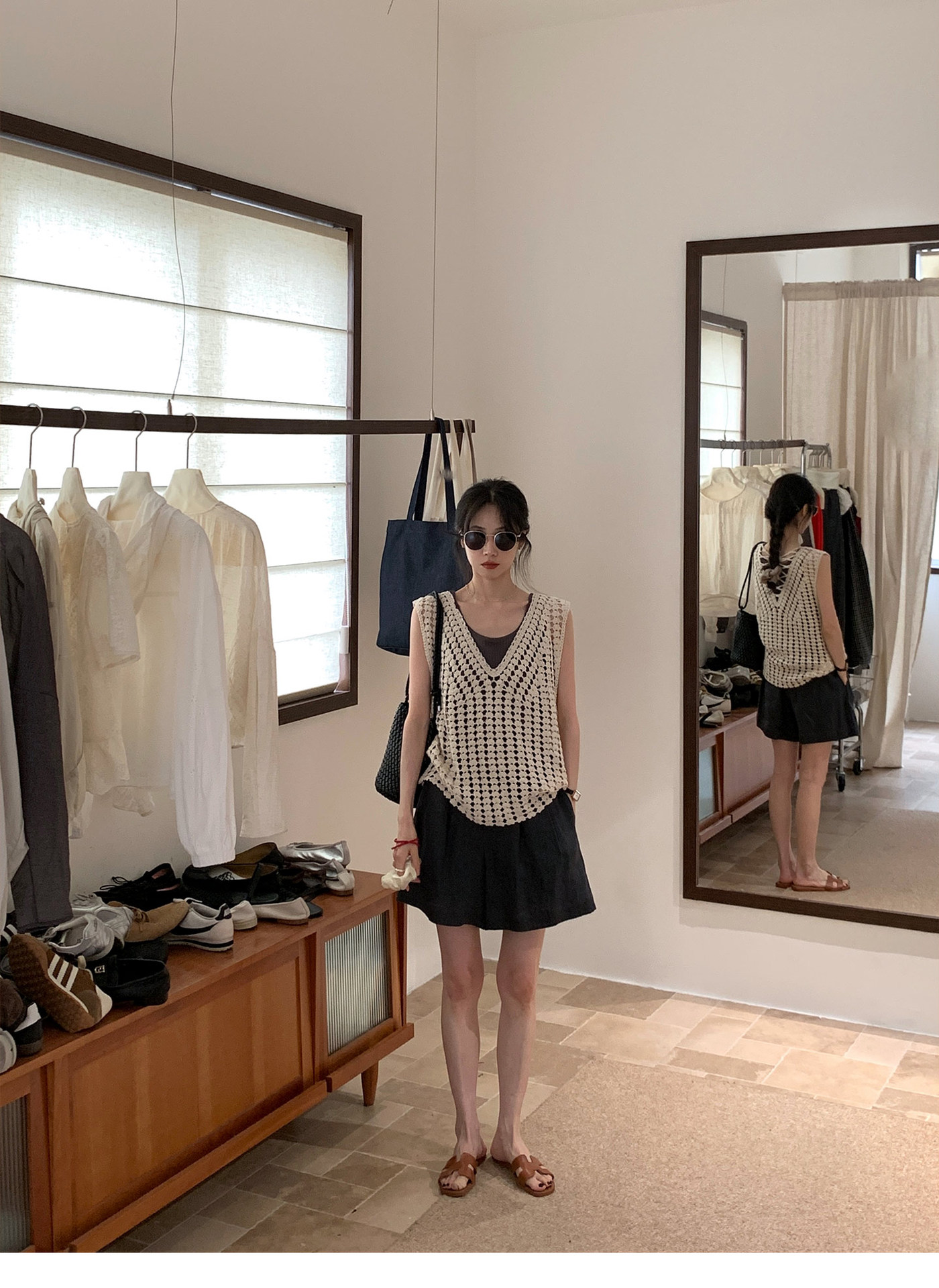 여성을위한 후크 패턴 중공 니트 조끼 여름 새로운 보헤미안 리조트 스타일 민소매 조끼 탑 겉옷스토어 가기