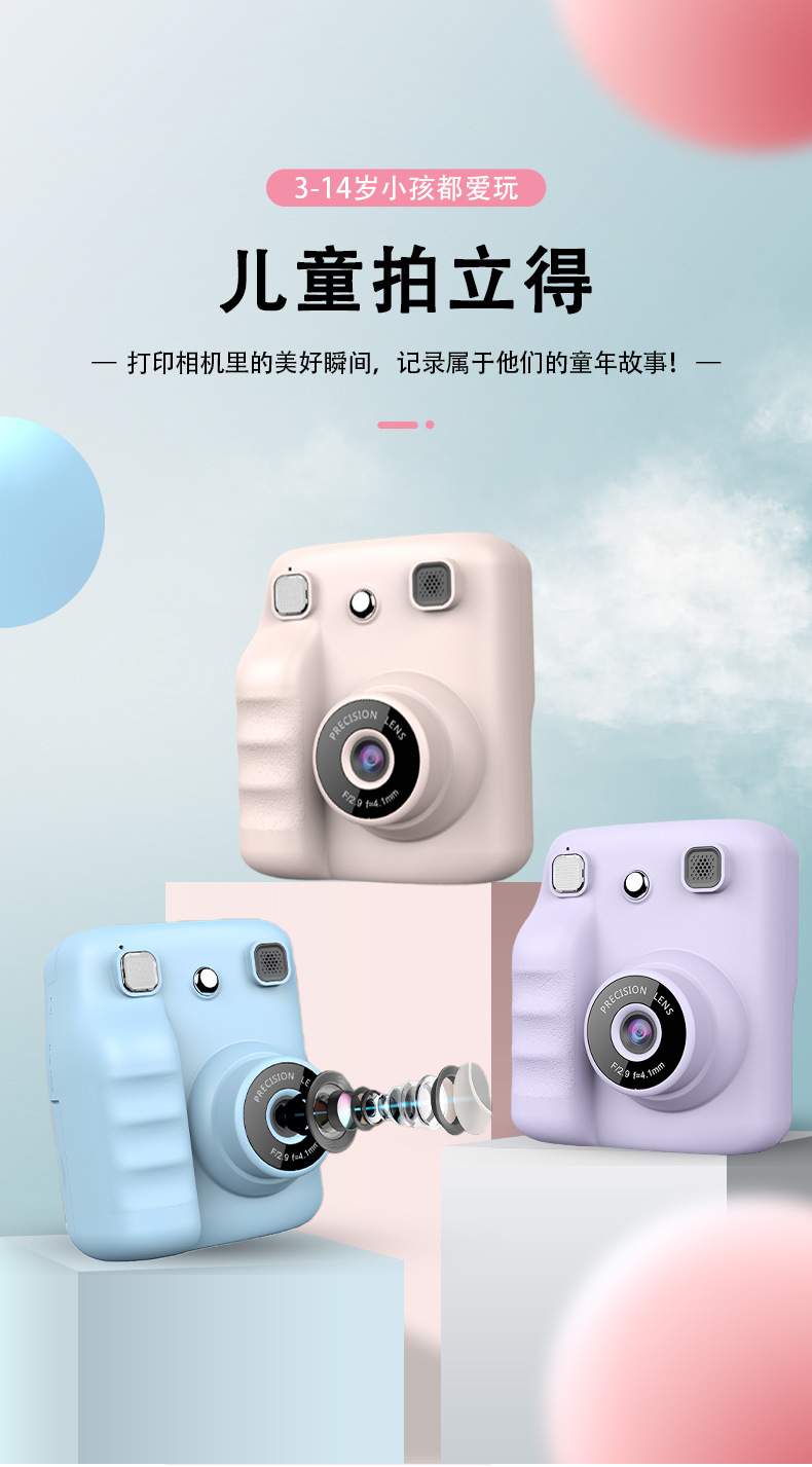 어린이용 디지털 카메라 고화질 촬영 휴대용 셀카 소형 즉석 사진 열전사 인쇄 카메라 어린이 카메라스토어 가기