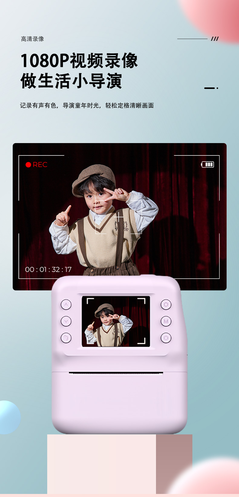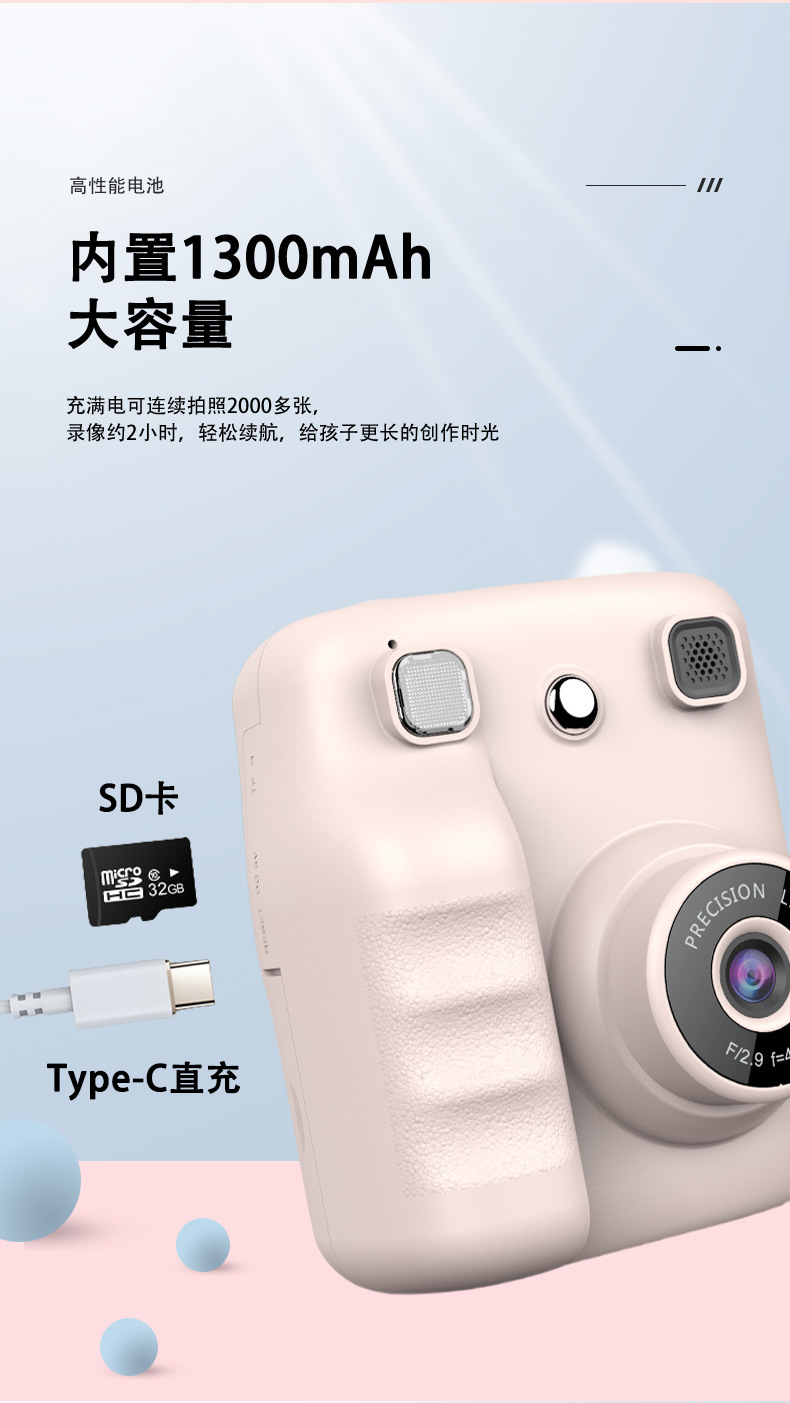 어린이용 디지털 카메라 고화질 촬영 휴대용 셀카 소형 즉석 사진 열전사 인쇄 카메라 어린이 카메라