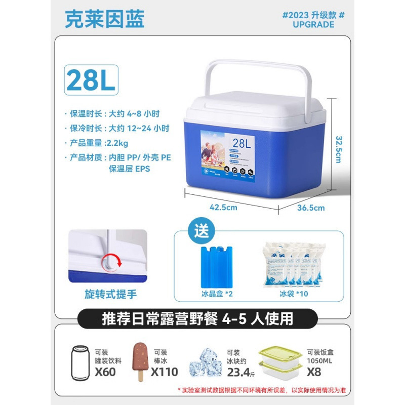 • 28L 두꺼운 파란색 [24시간 오래 지속되는 보냉] 무료 얼음 결정 상자*2+얼음주머니*10