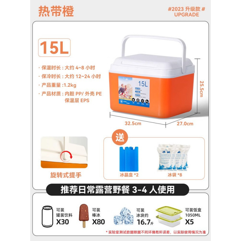 • 15L 걸쭉한 오렌지색 [24시간 오래 지속되는 보냉] 무료 얼음 결정 상자*2+얼음주머니*8