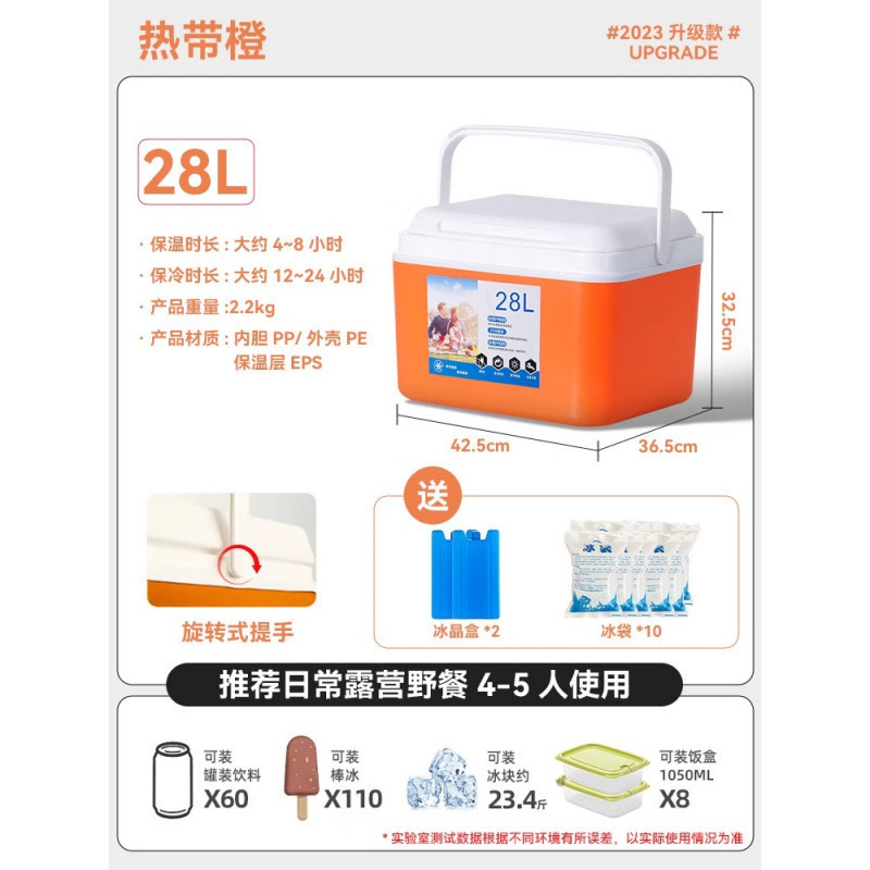 • 28L 걸쭉한 오렌지색 [24시간 오래 지속되는 보냉] 무료 얼음 결정 상자*2+얼음주머니*10
