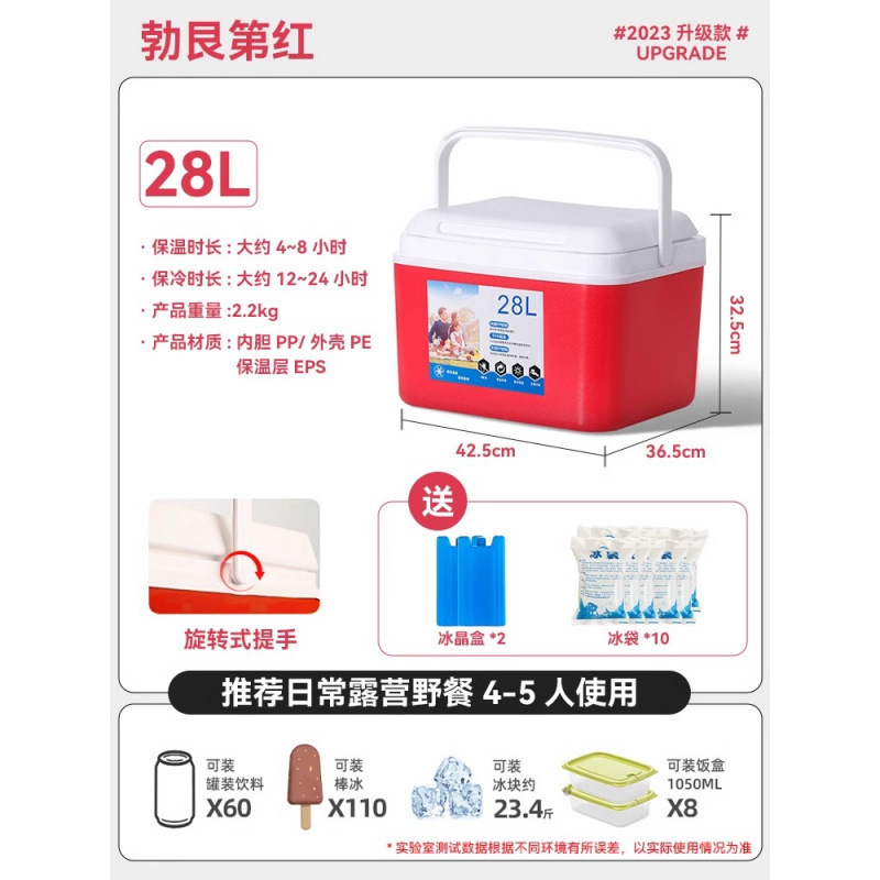 • 28L 걸쭉한 레드 [24시간 오래 지속되는 보냉] 무료 얼음 결정 상자*2+얼음주머니*10