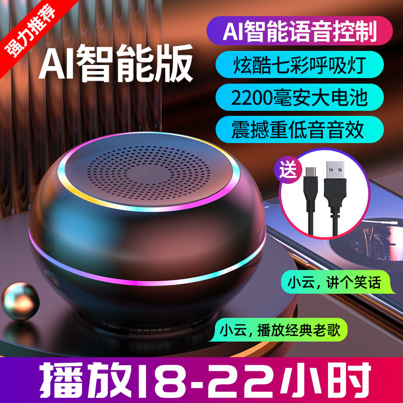 AI 스마트 무선 블루투스 소형 스피커 서브우퍼 소형 강철 총 휴대폰 외부 미니 스피커 휴대용스토어 가기