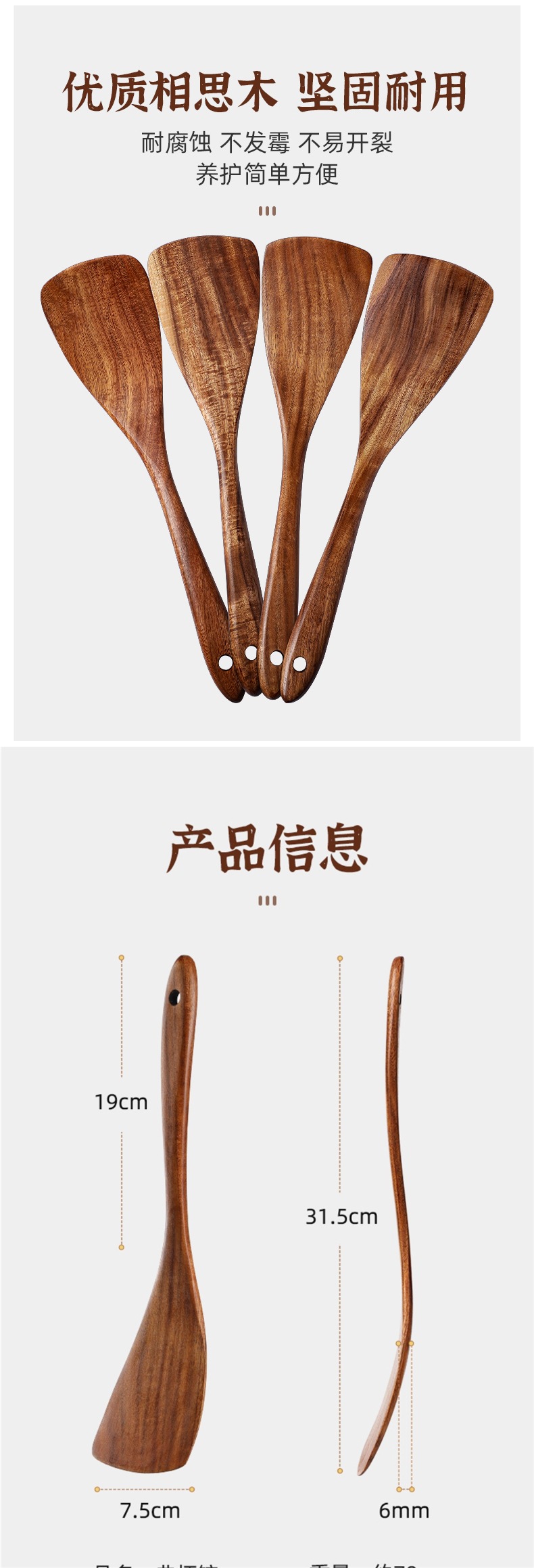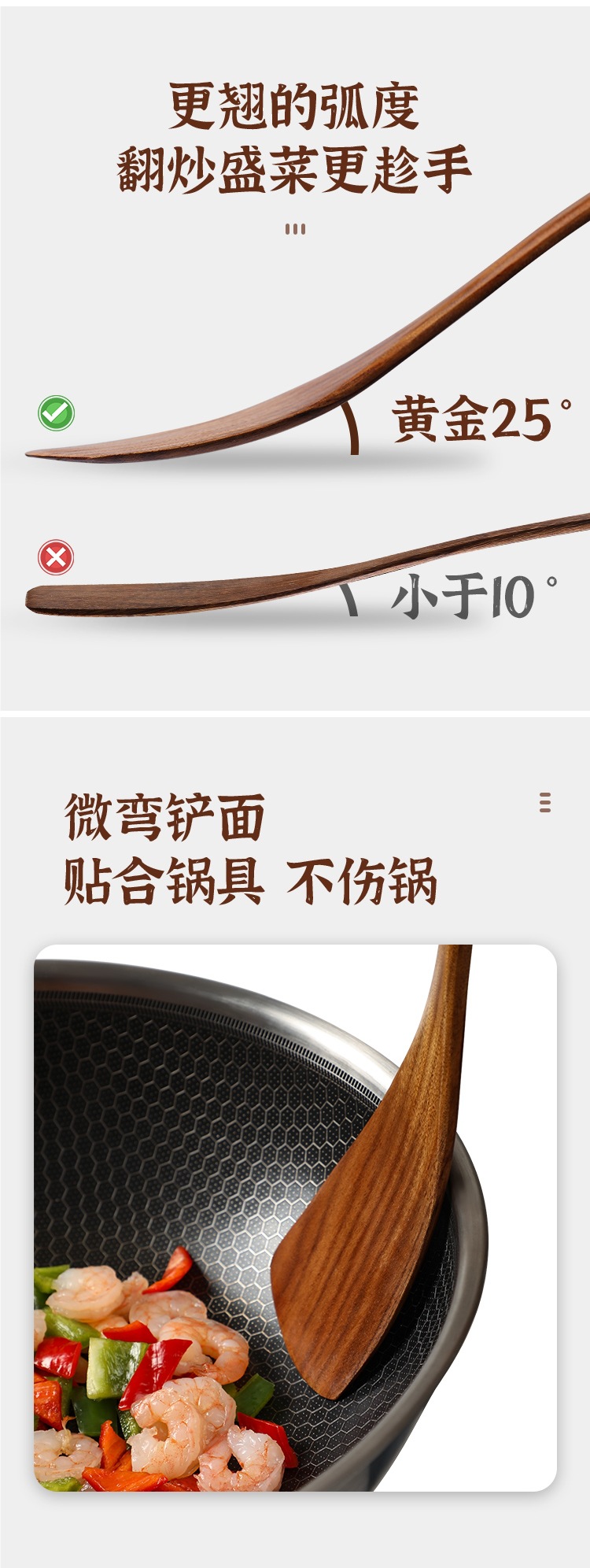 • 【아카시아나무】손잡이가 구부러진 주걱으로 볶음 요리에 편리함