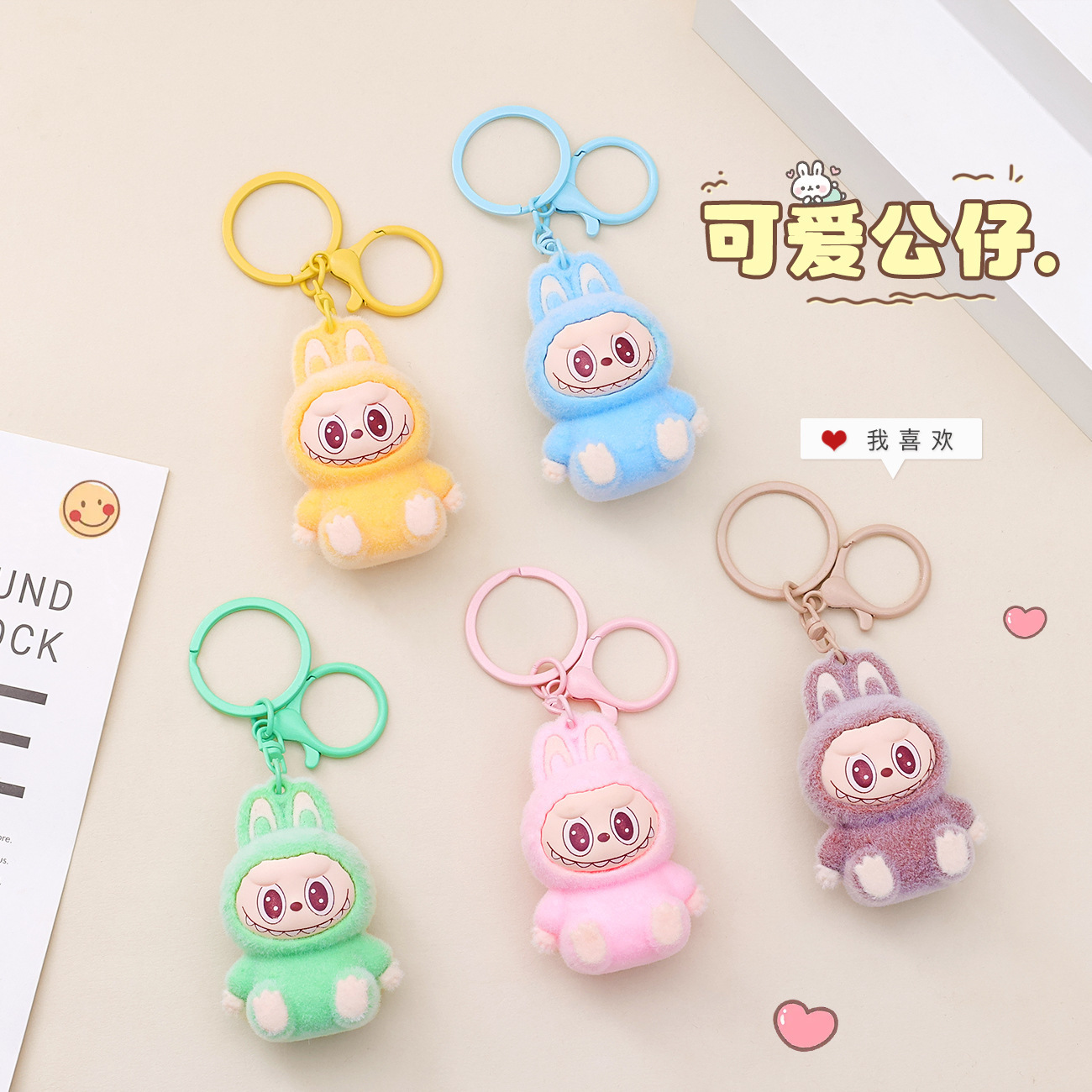 스팟 크로스보더 인기 라부부 플록 귀여운 열쇠 인형 라부부 가방 크리에이티브 선물 펜던트스토어 가기