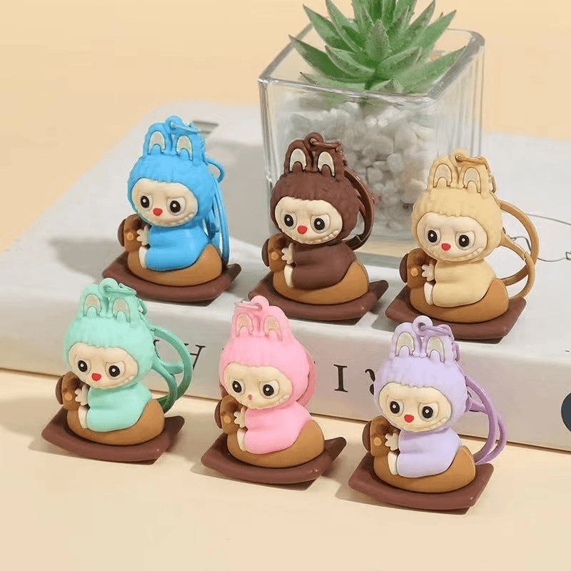 스팟 크로스보더 인기 라부부 플록 귀여운 열쇠 인형 라부부 가방 크리에이티브 선물 펜던트