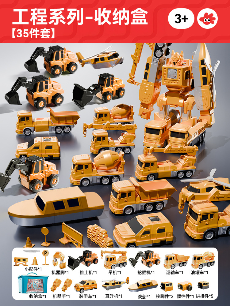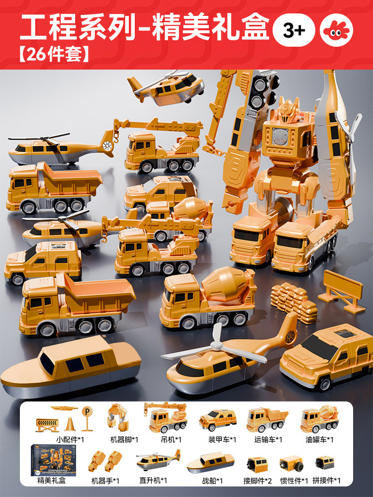 어린이 자석 변형 로봇 합체 킹콩 자석 장난감 소년 3~6세 소방 엔지니어링 차량 선물