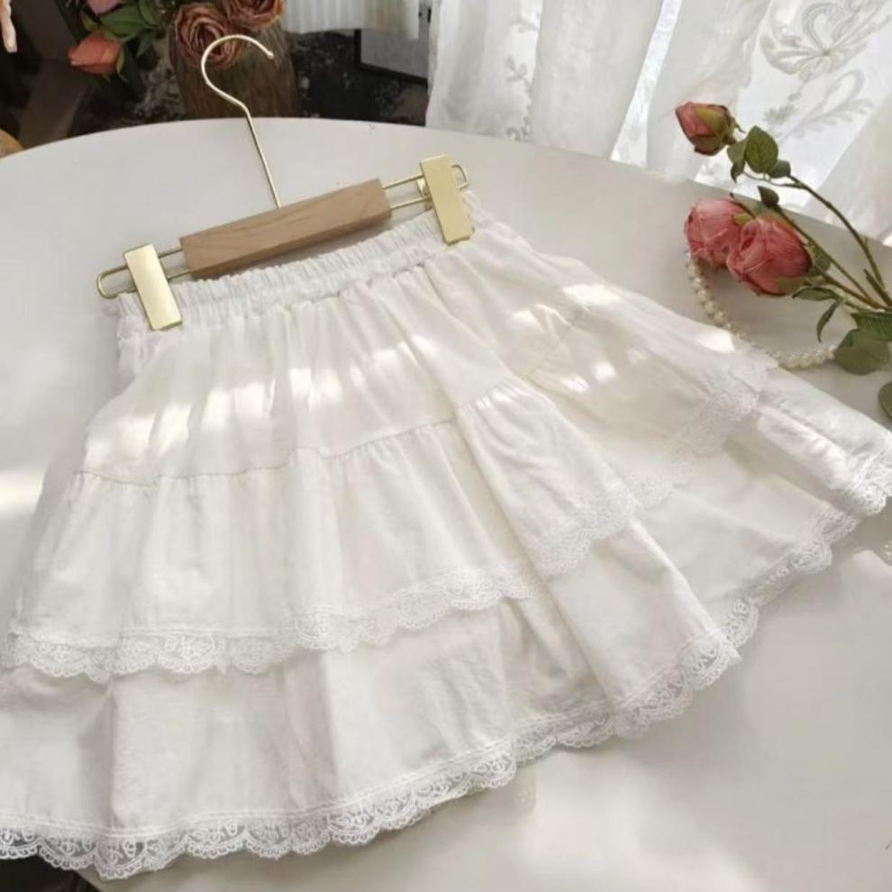 여아의 세련된 한국식 달콤한 레이스 케이크 스커트, 작은 흰색 스커트, 반바지