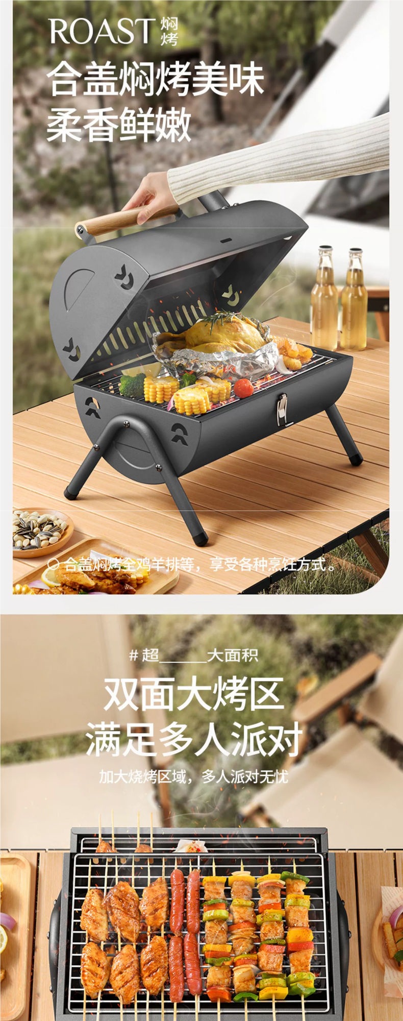 야외 휴대용 바베큐 그릴 피크닉 바베큐 그릴 양면 이중 용도 가정용 피크닉 바베큐 전체 세트 숯 스토브스토어 가기