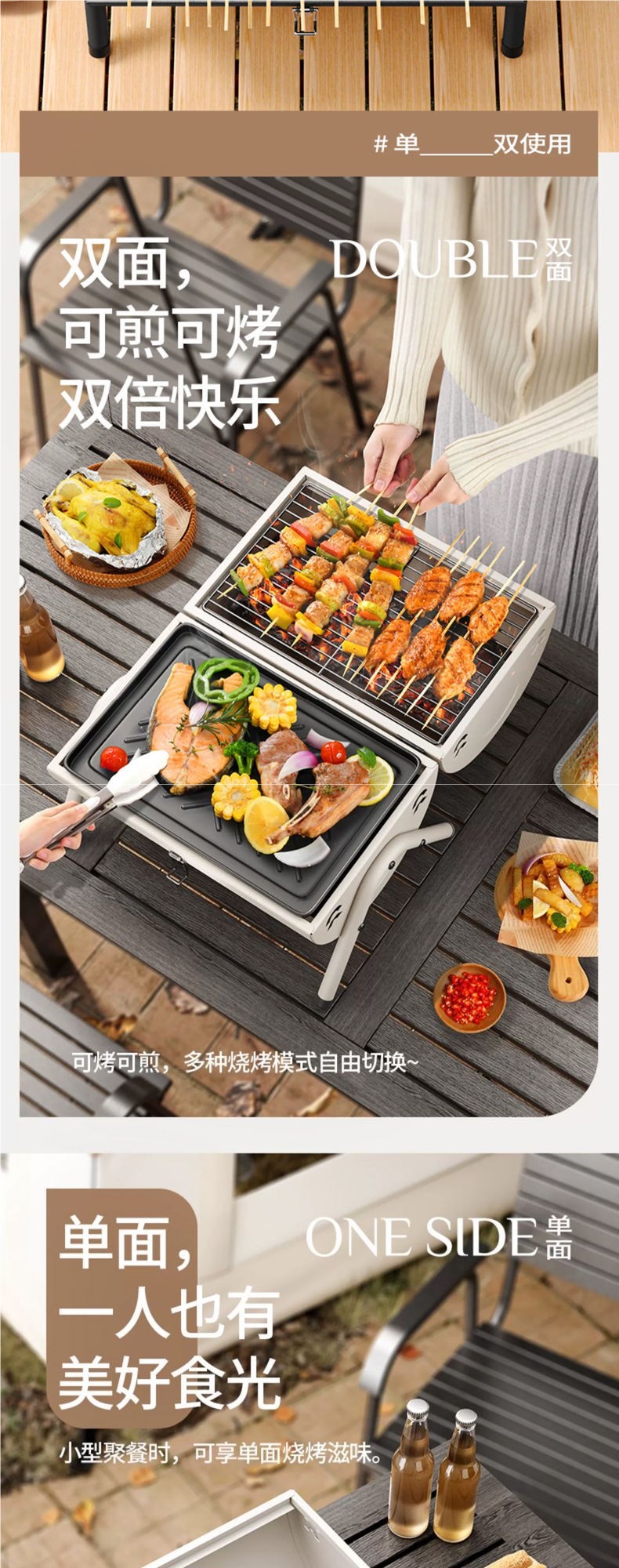 야외 휴대용 바베큐 그릴 피크닉 바베큐 그릴 양면 이중 용도 가정용 피크닉 바베큐 전체 세트 숯 스토브