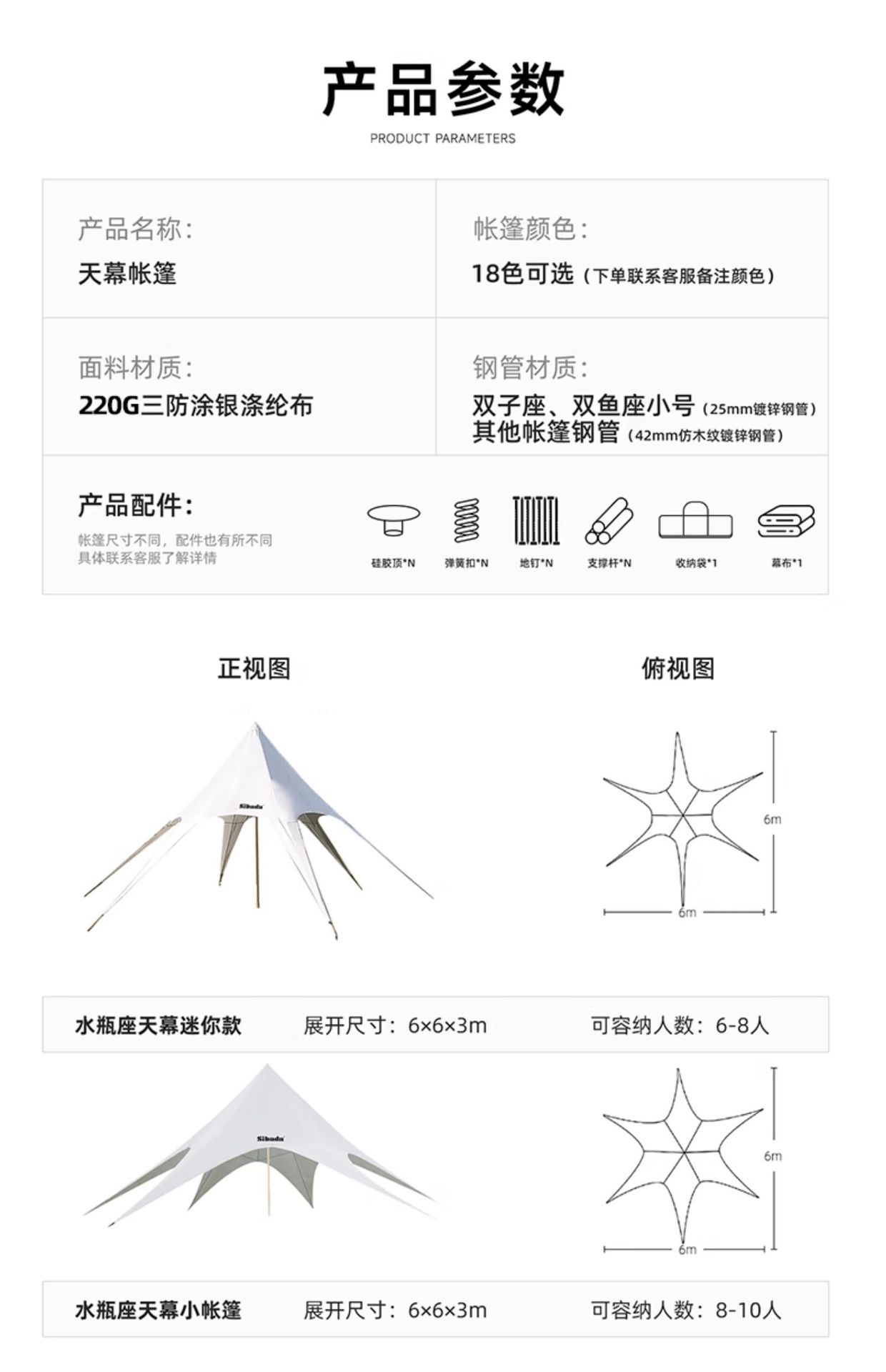 • [8-10명] 900D 싱글 피크 중형 6*6* 3m색