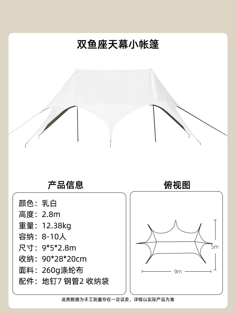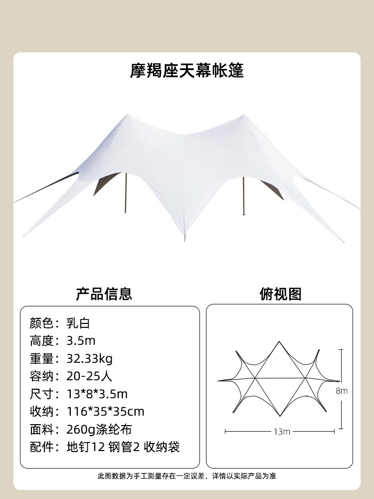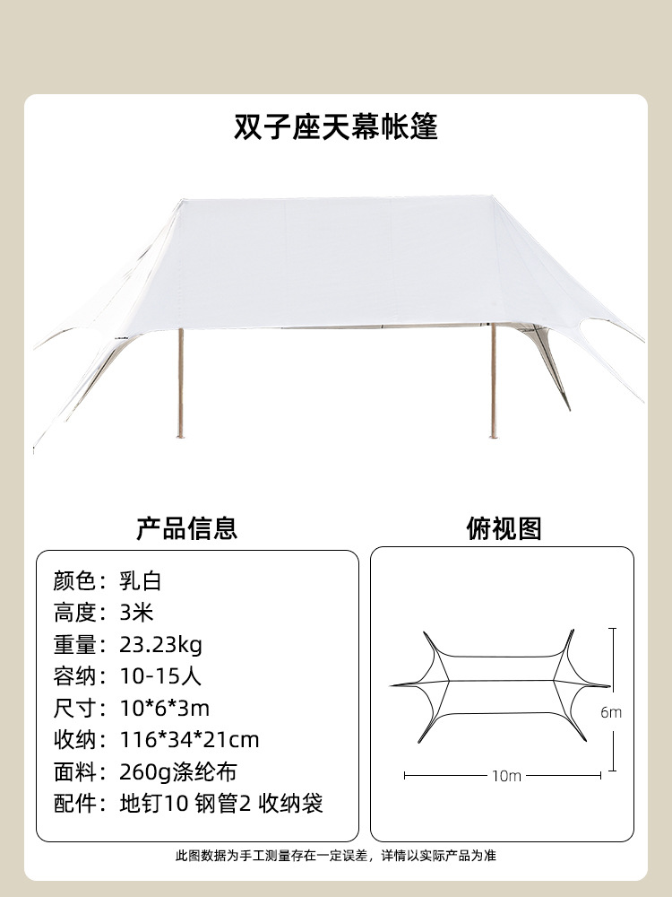 야외 캠핑 Wanzhongshan 초대형 구름 탑 캐노피 라이트 럭셔리 캠핑 더블 피크 트리플 피크 텐트 태양 보호 및 비 차양스토어 가기