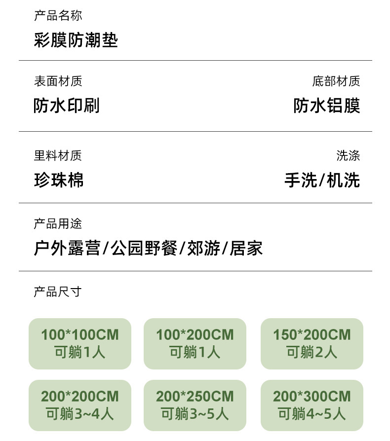 피크닉 매트, 방습 매트, 두꺼운 양면 방수 및 단열, 야외 휴대용 피크닉 매트, 바닥 매트