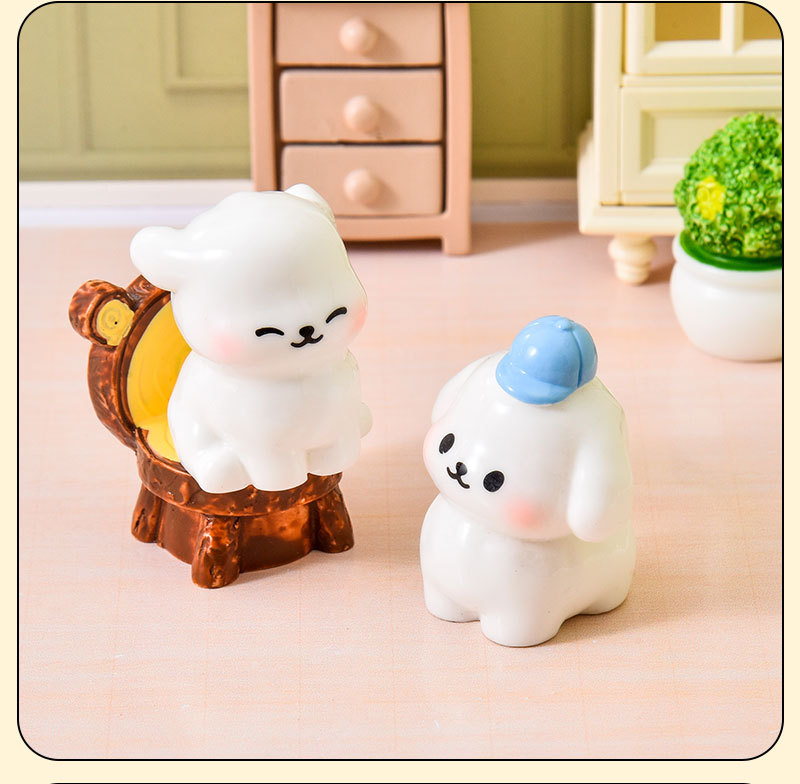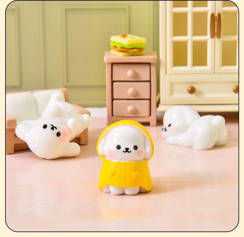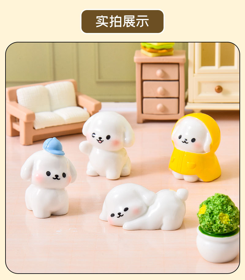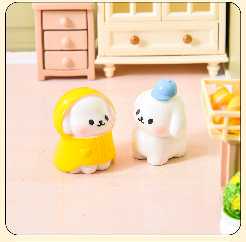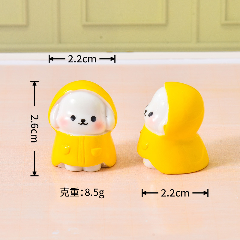 만화 귀여운 애완 동물 비옷 강아지 귀여운 인형 마이크로 풍경 인형 집 diy 장식 액세서리 데스크탑 작은 장식품