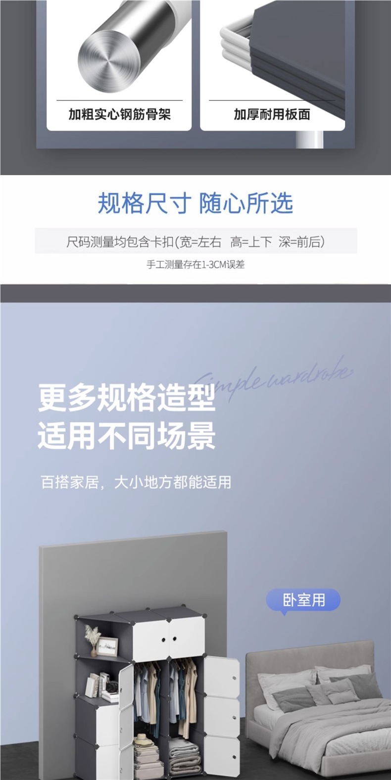 간단한 옷장 홈 침실 조립 보관 캐비닛 임대 기숙사 작은 저장 공간 강력하고 내구성 2025 새로운 스타일스토어 가기
