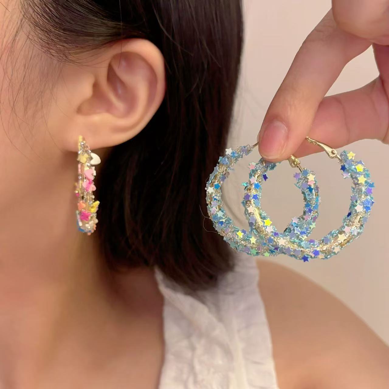 여성을 위한 새로운 패셔너블한 컬러풀한 대형 귀걸이, 컬러풀한 귀걸이, 틈새시장, 하이엔드, 가벼운 럭셔리 귀걸이, 귀걸이, 액세서리스토어 가기