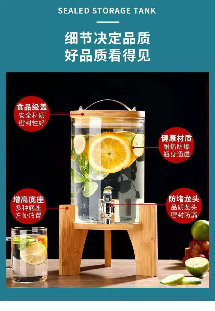 셀프 서비스 음료통, 주스병, 유리병, 수도꼭지가 있는 인터넷 연예인 와인 용기, 콜라통, 과일차통, 맥주통스토어 가기
