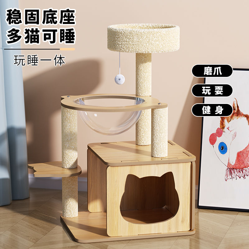 빌라 천공 기둥 점프 플랫폼 고양이 빌라 고양이 둥지 고양이 장난감 공간 캡슐 고양이 클라이밍 프레임 사계절 사용 가능